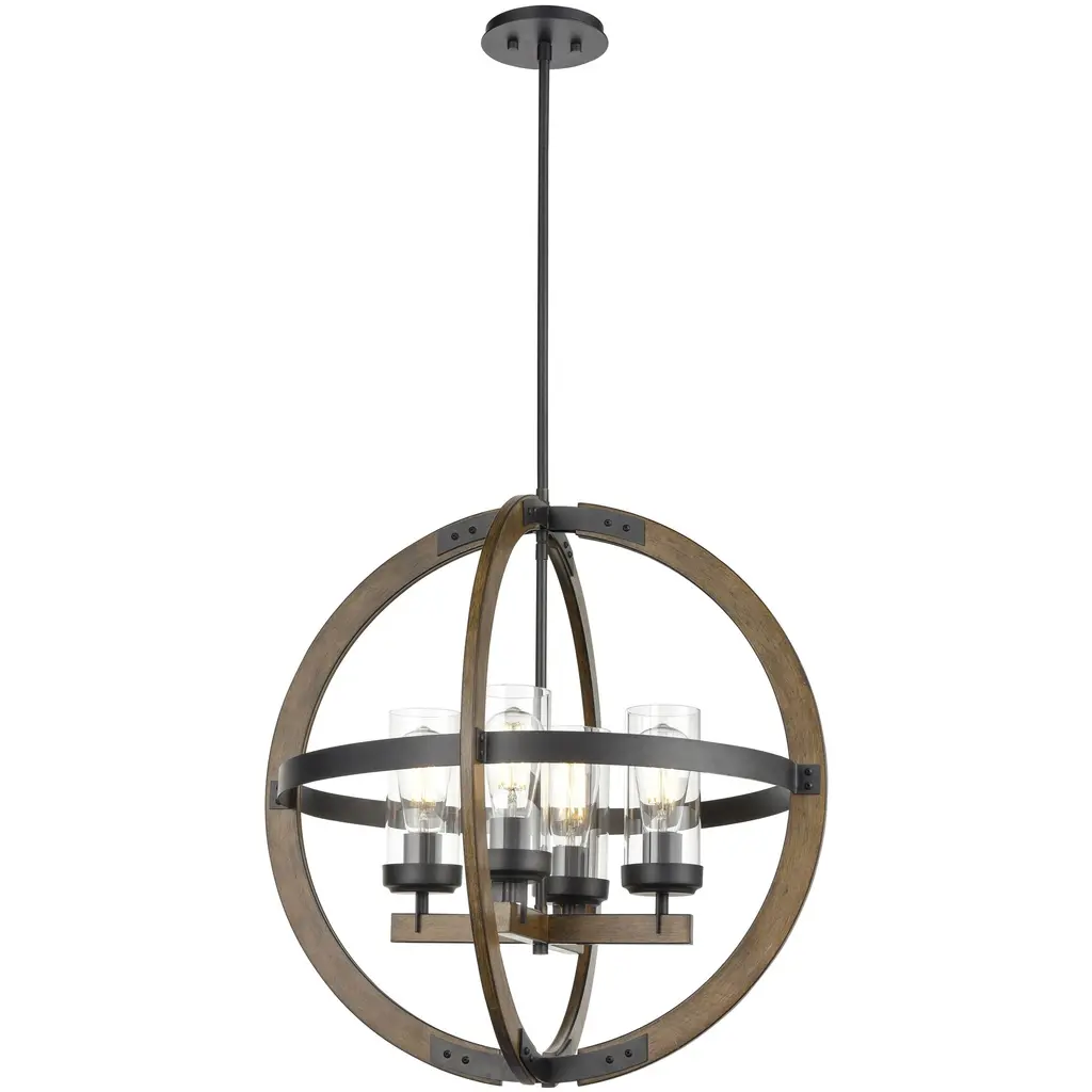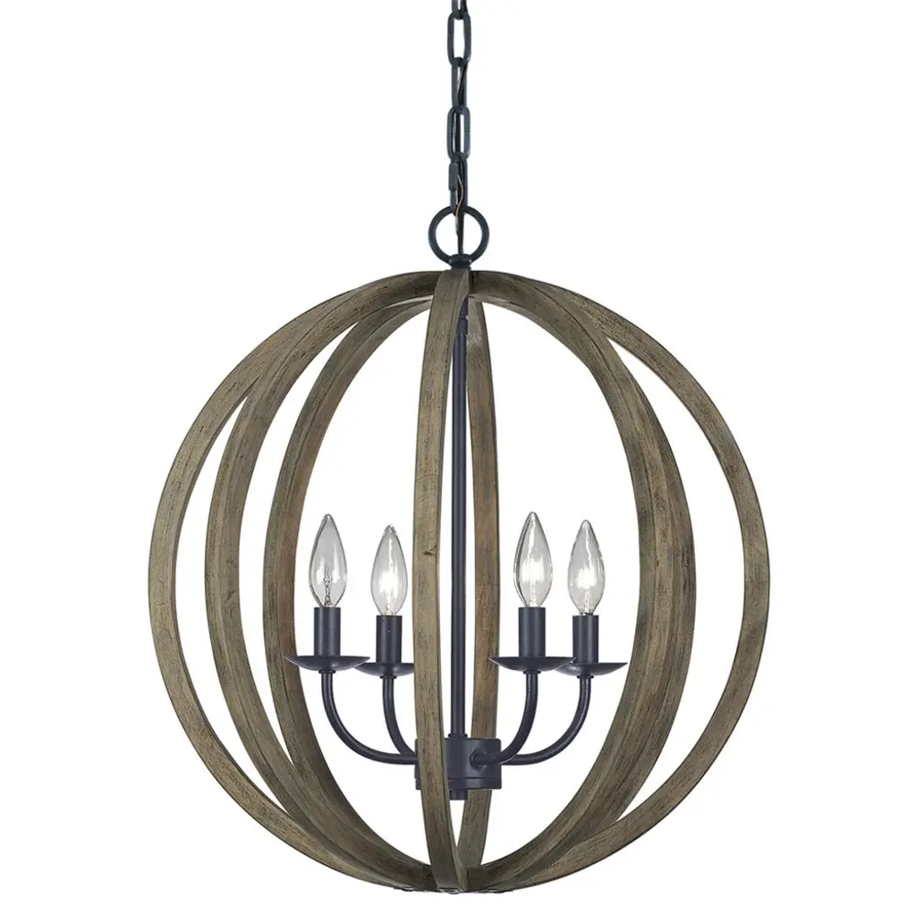 Visual Comfort Studio Allier Rustic Weathered Oak Iron Pendant - Small
