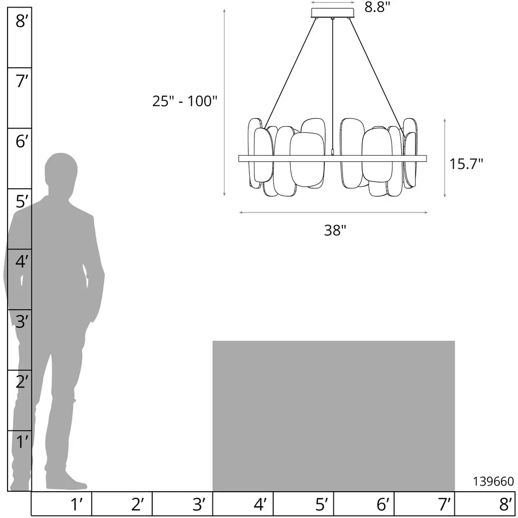 The Vitre Circular LED Pendant is ideal for a great room, grand foyer or any space that requires a focal piece. This grand lighting pendant is cable-hung and features unique, handmade slabs of clear glass with abstract white "swirls" that give depth and add beauty to this chandelier. Each vertical piece of glass looks organic in form, yet is slotted into the LED light-guide which provides a wash of up-and-down light. Also available as a large linear pendant.