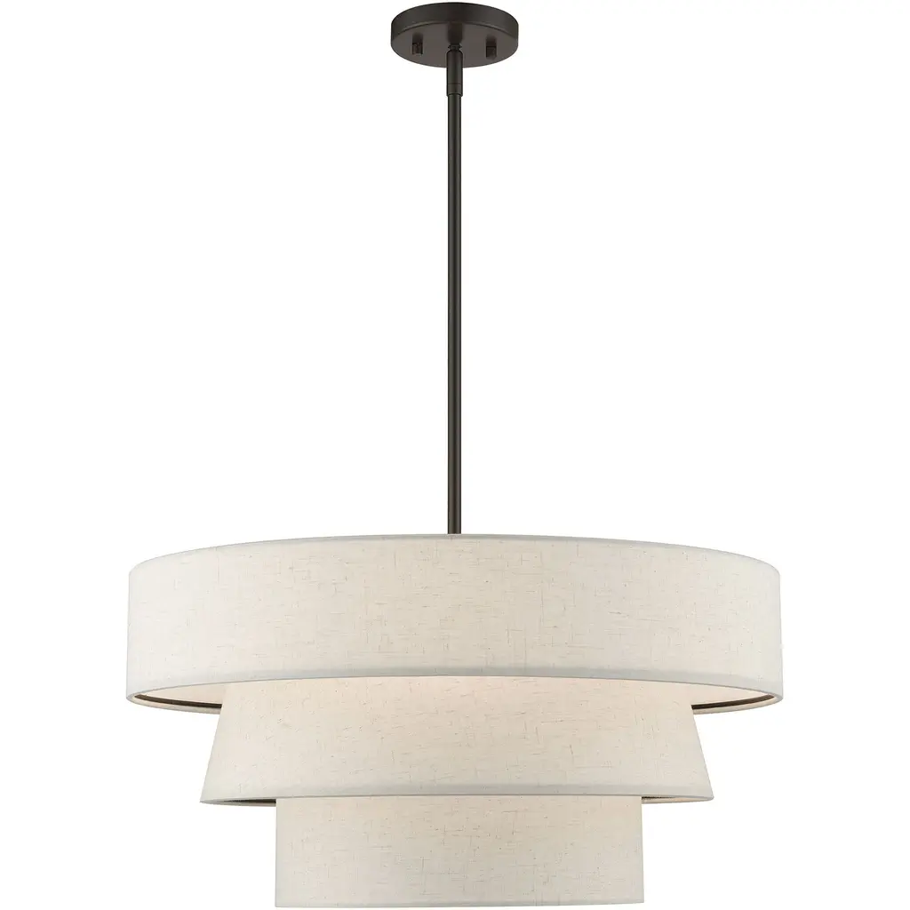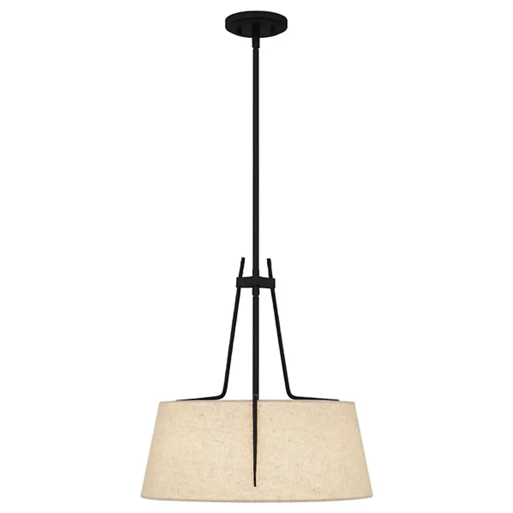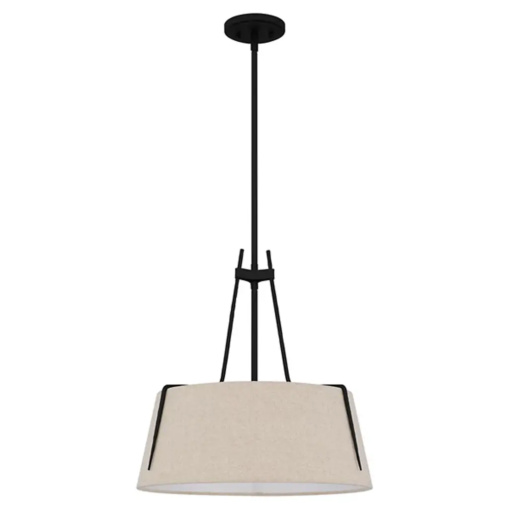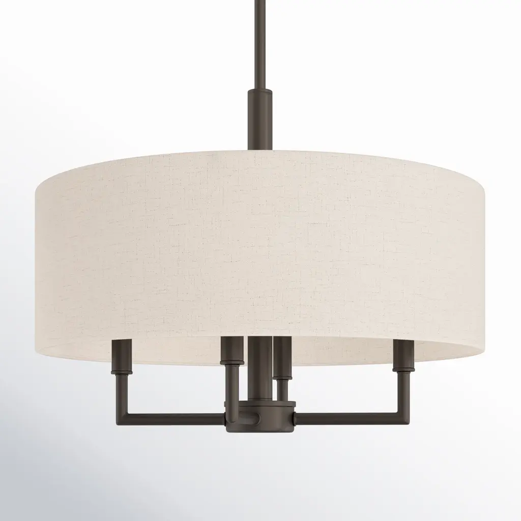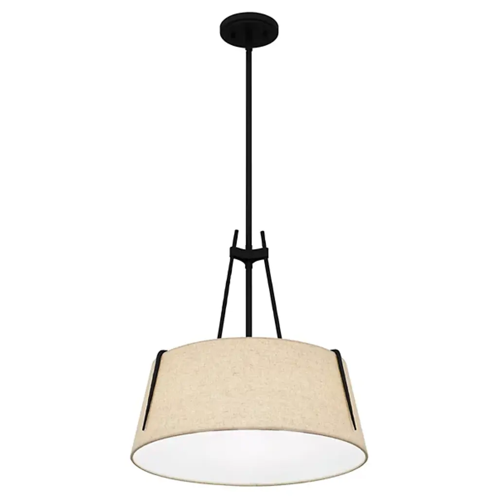 The Vivianna Drum Pendant from Huxe is a cozy lighting piece, presenting transitional design with a dressy personality. This pendant sports a tight suspension and canopy, making it a great choice in series over a table surface. The piece catches the eyes as the sharp lines created by the iron framework drape over the soft shape of the shade. This shade suggests the classics through its familiar tapered drum form. The shade’s natural linen construction gives it an elegant texture. Light from inside enhances the shade’s texture as it filters past and streams through its wide opening in a spacious down glow.