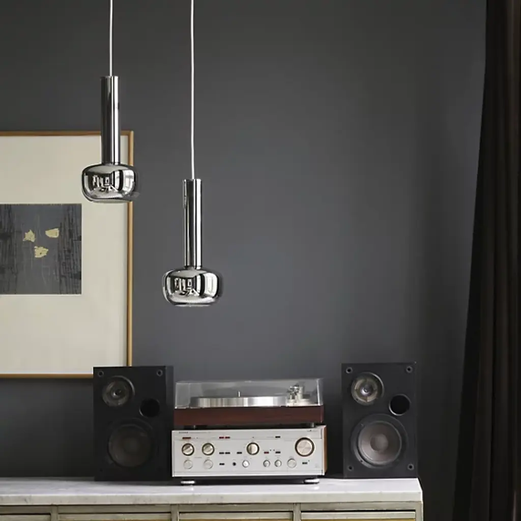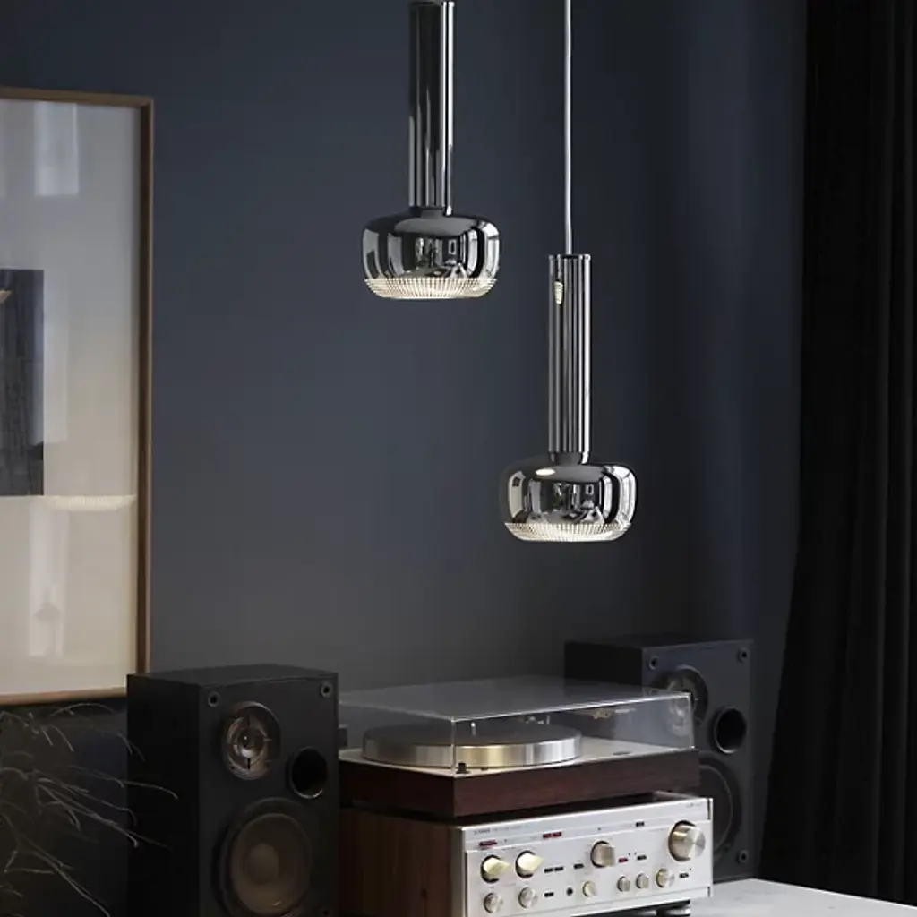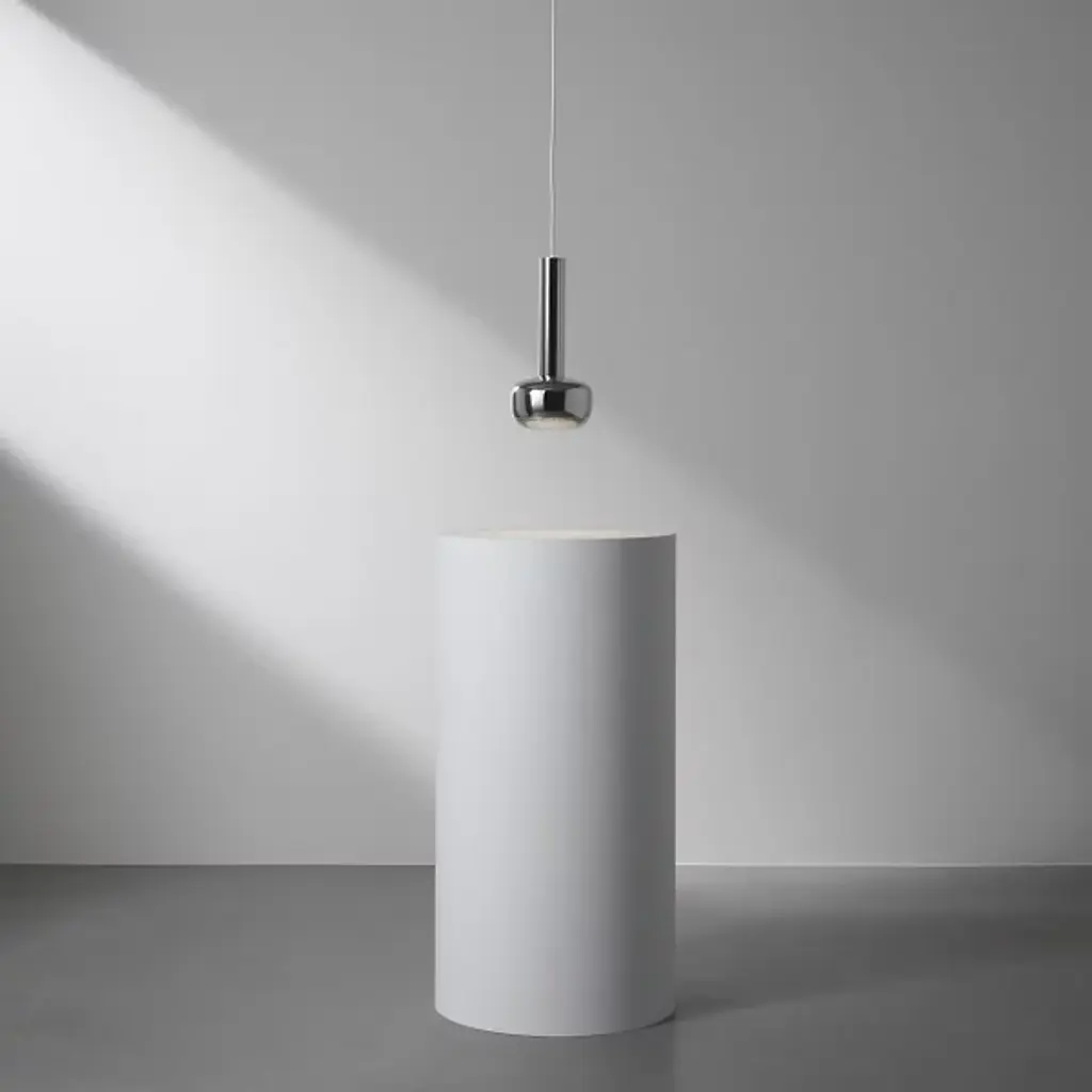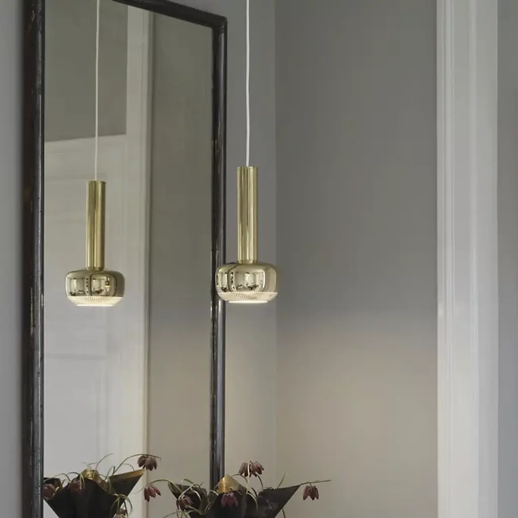 The VL 56 Mini Pendant from Louis Poulsen gives its surroundings an expressive and direct appeal. Designed by Danish functionalist architect Vilhelm Lauritzen, who created every aspect of a building originally conceived for the Danish Labour Movement, which is now a concert hall, with the lamps still shining bright. A slim disc canopy secures the fixture, transmitting a fine stem to a sculptural aluminum structure below, a cylindrical light housing supporting a lower, rounded shade around the lamping, left open at its base and accompanied by a layer of pinhole vents around it to deliver a mix of direct light and soft ambiance below.