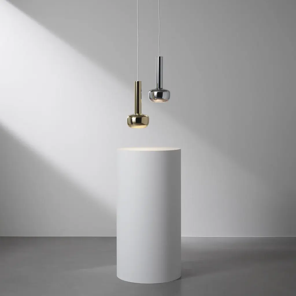 The well-known functionalist architect, Vilhelm Lauritzen designed the VL 56 Pendant for Folkets Hus, in Vesterbro Copenhagen. Originally designed and built for the Danish Labour Movement, the building opened in 1956 and is now used as a concert hall, called Vega. The building is a gesamtkunstwerk, meaning that Lauritzen designed everything in the building, from doorknobs, staircases and power outlets, to furniture and lamps. The VL 56 Pendant is one of the lamps Vilhelm Lauritzen designed for Vega, and to this day it hangs above the wood-panelled bar, adjacent to the concert hall. Both the chrome and brass variants were reintroduced in 2023, with slight adjustments and improvements.