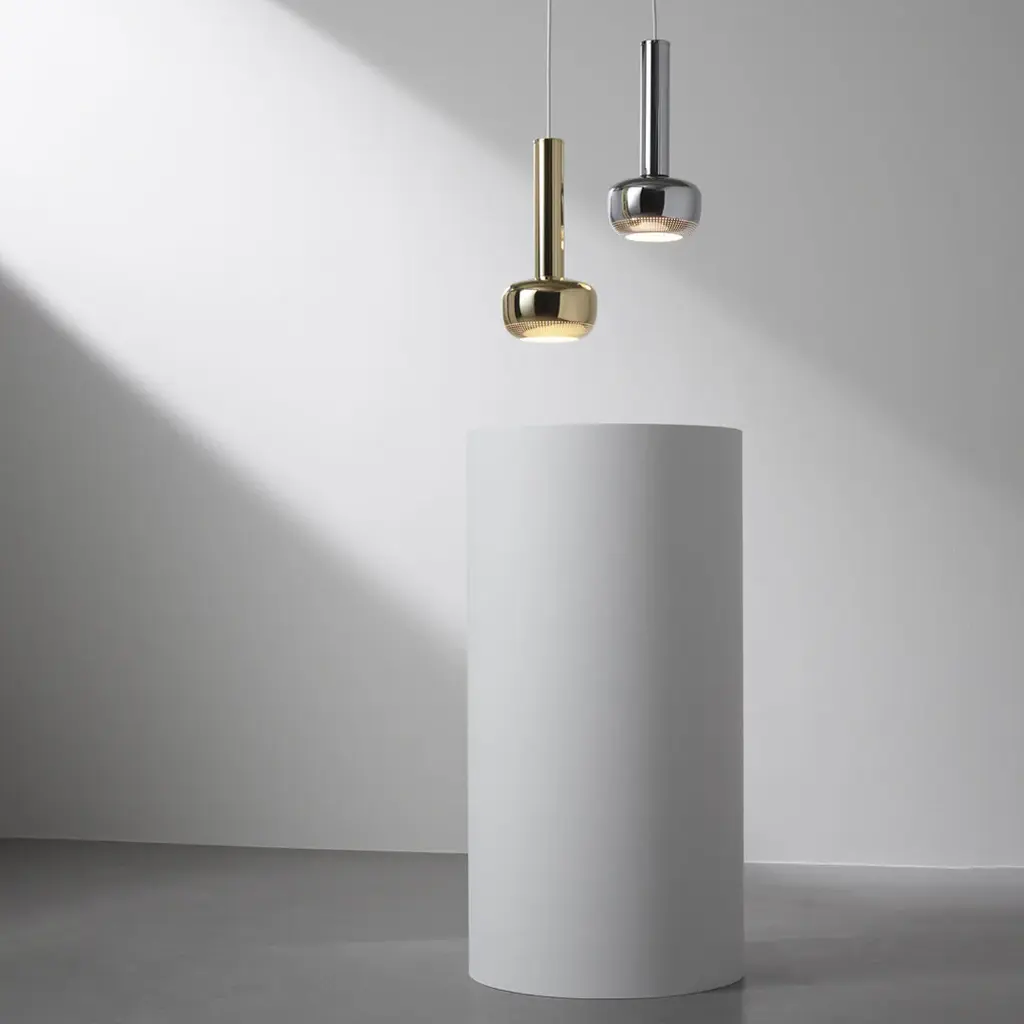 The well-known functionalist architect, Vilhelm Lauritzen designed the VL 56 Pendant for Folkets Hus, in Vesterbro Copenhagen. Originally designed and built for the Danish Labour Movement, the building opened in 1956 and is now used as a concert hall, called Vega. The building is a gesamtkunstwerk, meaning that Lauritzen designed everything in the building, from doorknobs, staircases and power outlets, to furniture and lamps. The VL 56 Pendant is one of the lamps Vilhelm Lauritzen designed for Vega, and to this day it hangs above the wood-panelled bar, adjacent to the concert hall. Both the chrome and brass variants were reintroduced in 2023, with slight adjustments and improvements.