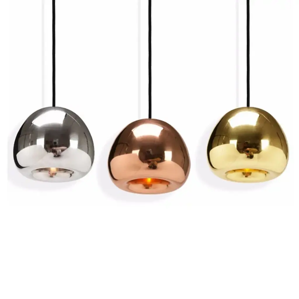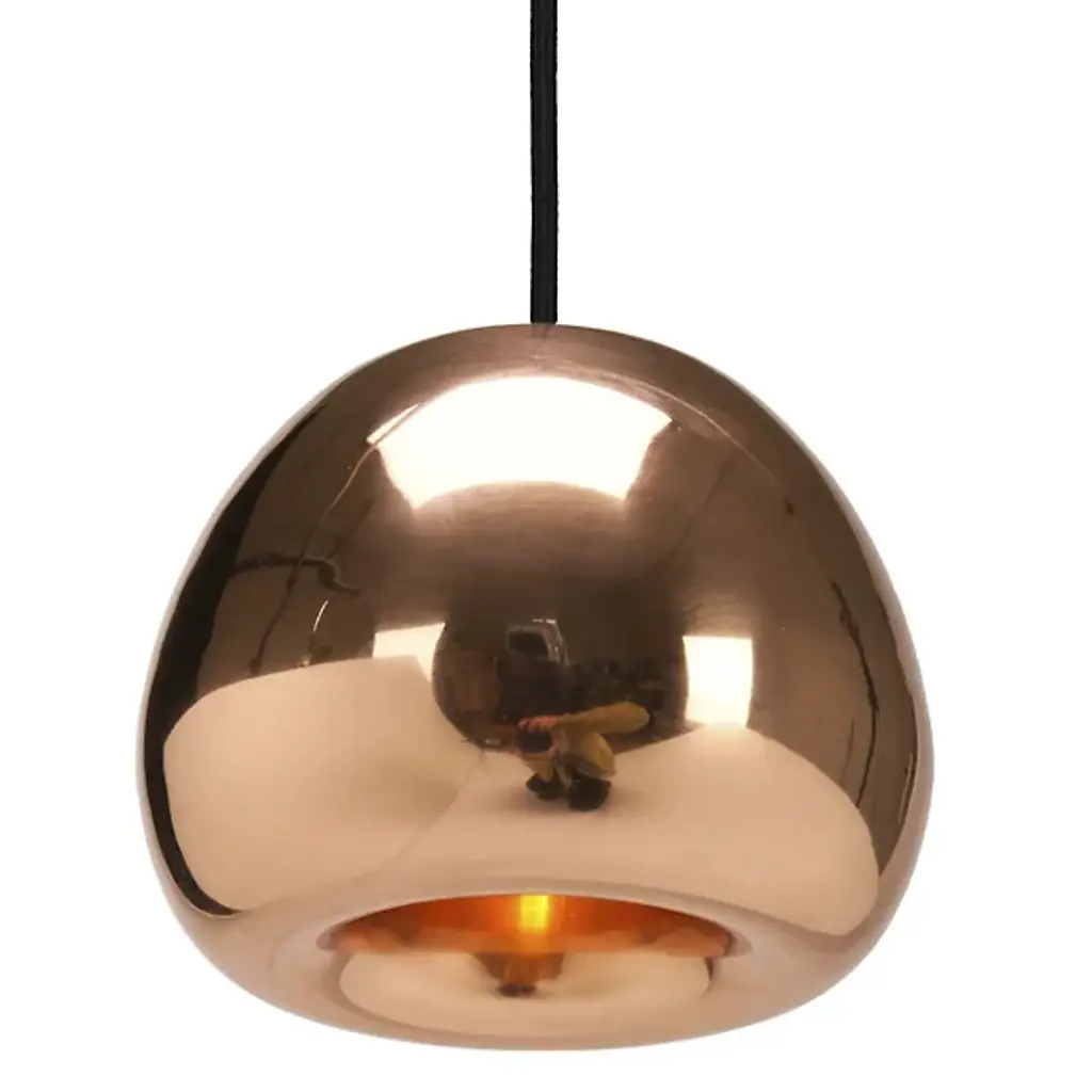 A petite variation on the Void series. Like the original, the Tom Dixon Void Mini LED Pendant replicates the gold, silver and bronze color palette of the Olympic medals in semi-precious Metals that have been hand-spun and brazed into an entirely unique double-walled structure. Lighting comes courtesy of an internal LED light which shimmers off the fixture’s reflective surface as it provides a functional downlight.