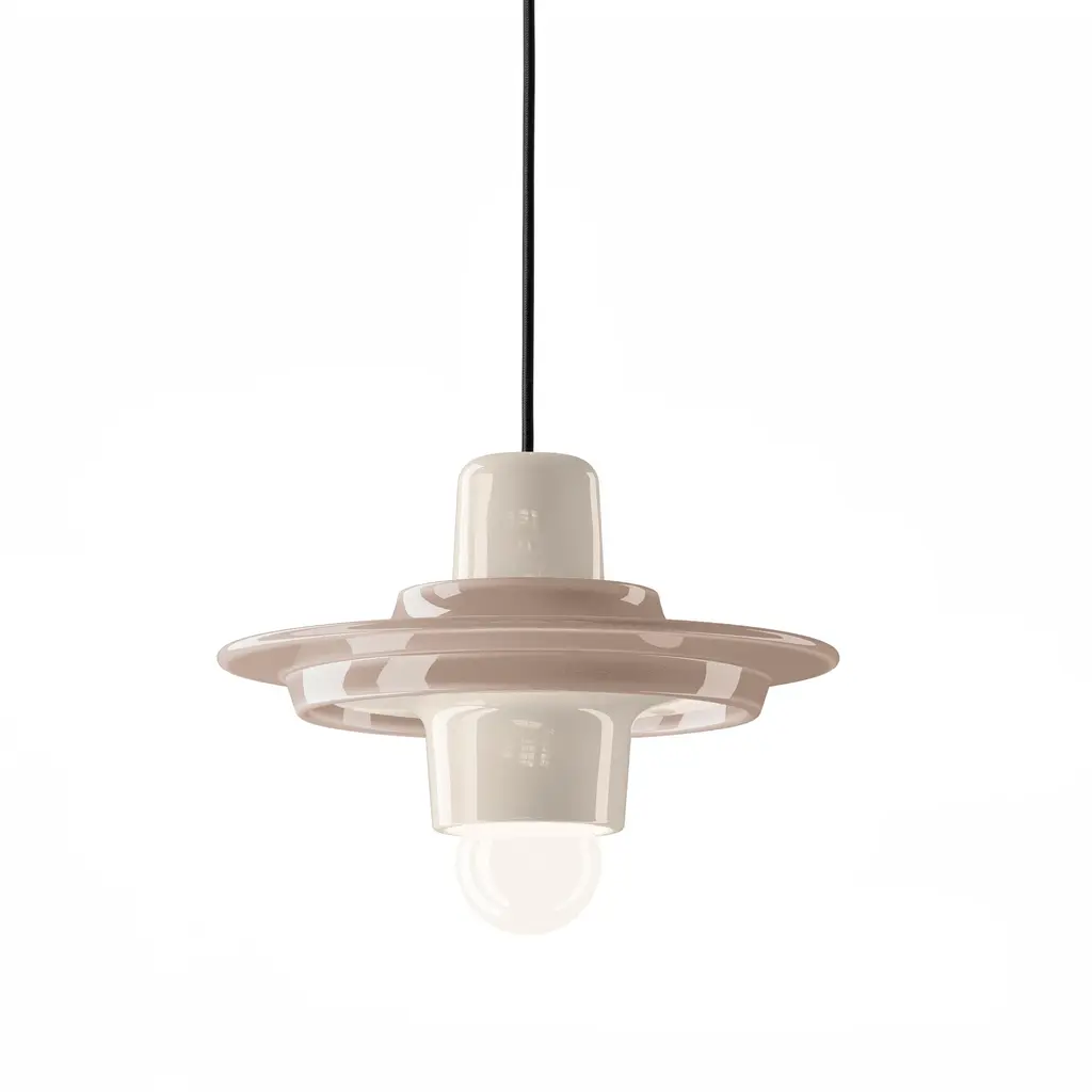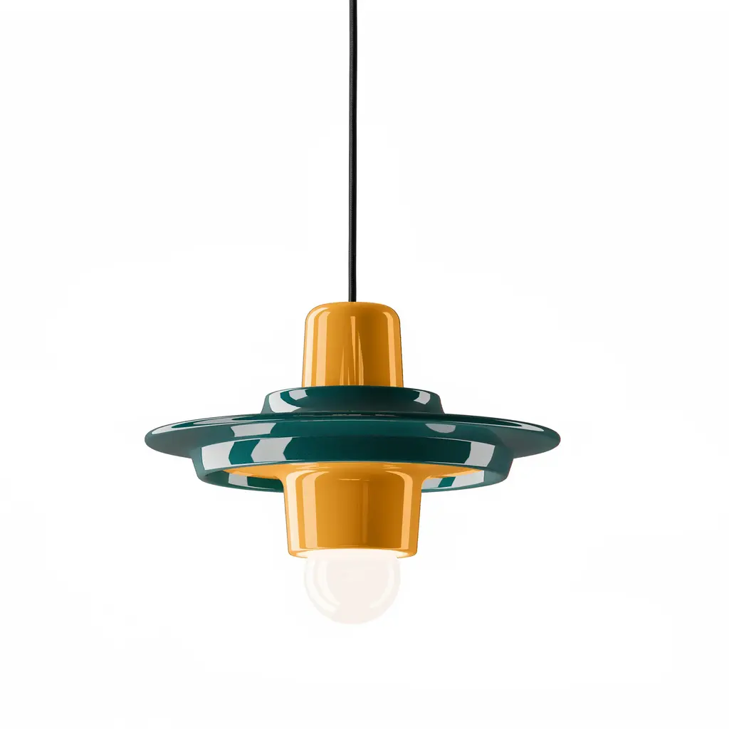 Add a touch of whimsy to your space with the Voila Pendant Light from Ferroluce. The deco-style ceramic lamp features a retro design that adds charm to any room. With its contrasting colors and elegant proportions, this pendant creates a soft and diffused light, making it perfect for kitchens and hallways. Use it as a statement piece or in series to brighten up medium spaces and long corridors. Highlights