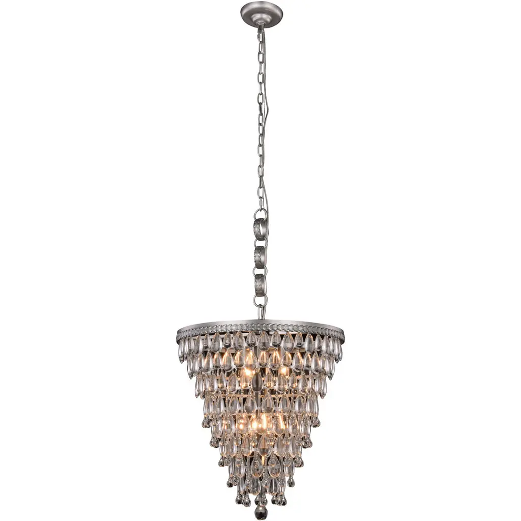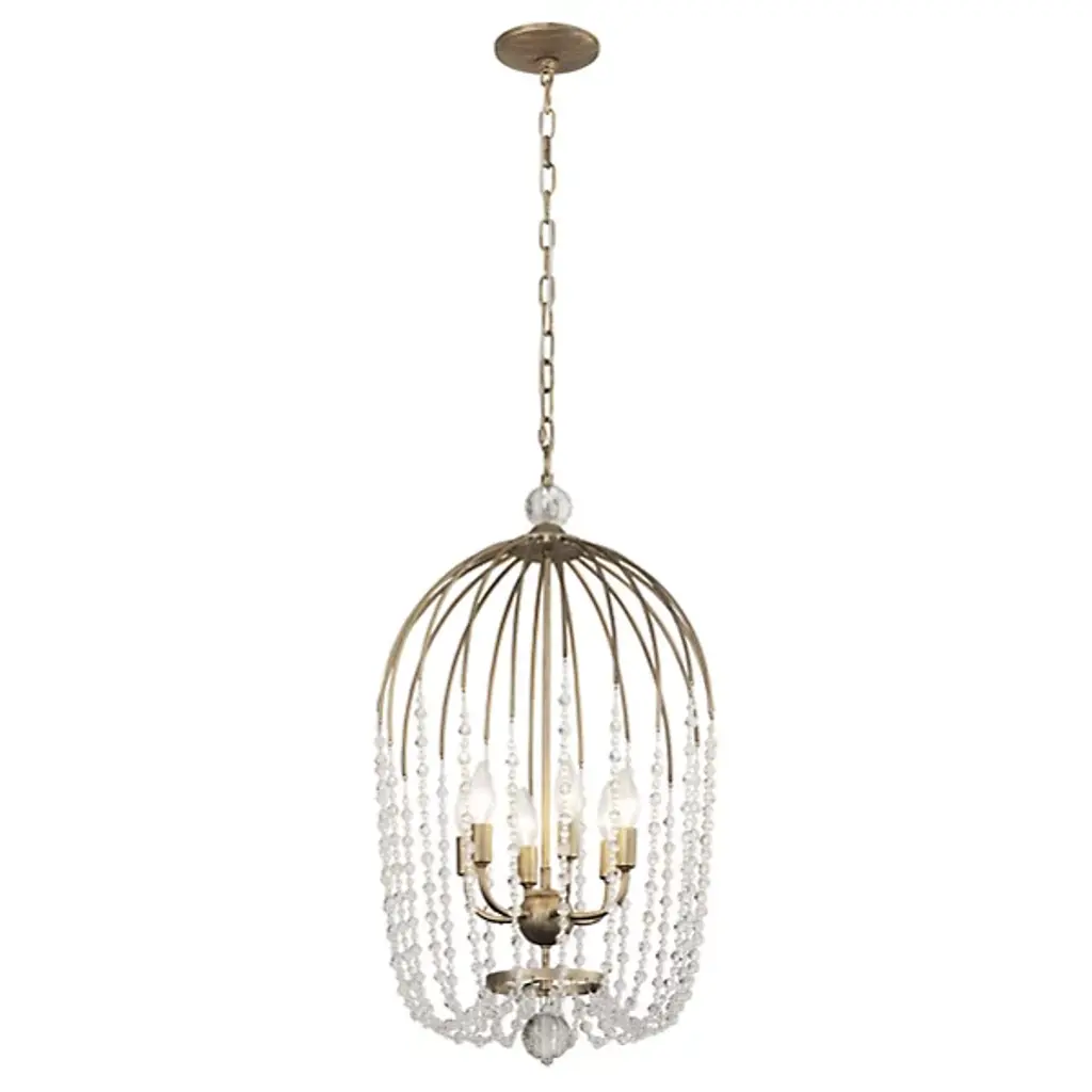 A sparklingly unique take on modern pendant lighting. The design of the Voliere Tall Pendant by Varaluz was inspired by umbrella cages, and the finished piece resembles a birdcage. The whimsical look is paired with similarly whimsical craftsmanship, starting with a hand-forged recycled Steel frame that unexpectedly segues into sparkling strands of clear Optic Crystal. The crystal completes the curved lines of the frame and enhances the light produced by the exposed bulbs inside. At once charming and modern, this distinctive pendant is a true conversation starter when installed over a dining table or in an entryway.