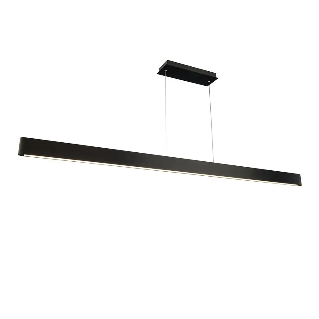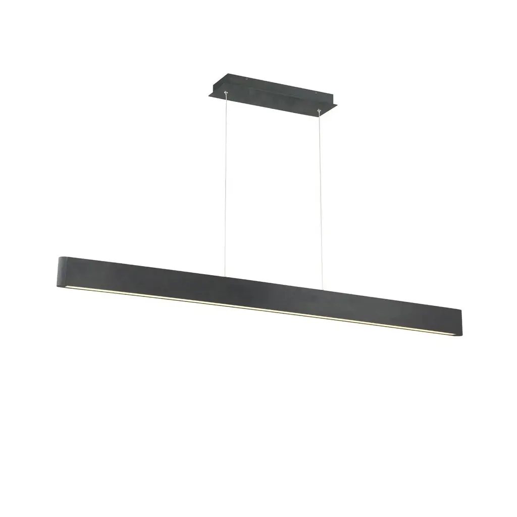Wishful lighting in a luminous linear chandelier with a handsome brushed metal finish and rounded ends. Ultra thin pendant for the discerning minimalist. Volo is suspended on two thin low profile cables without the need for an additional power cord, lending to a simple and minimalistic design. Adjustable to different lengths through a push-pin locking mechanism at the canopy. Features