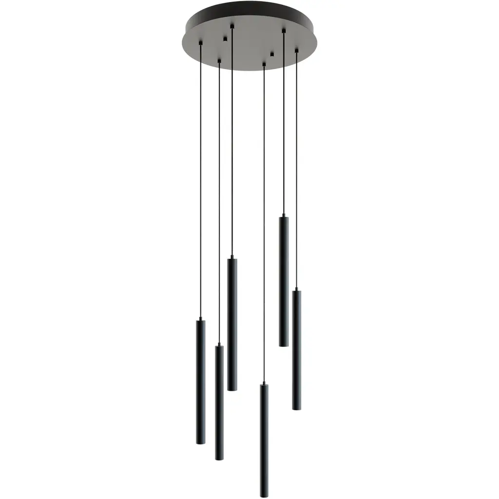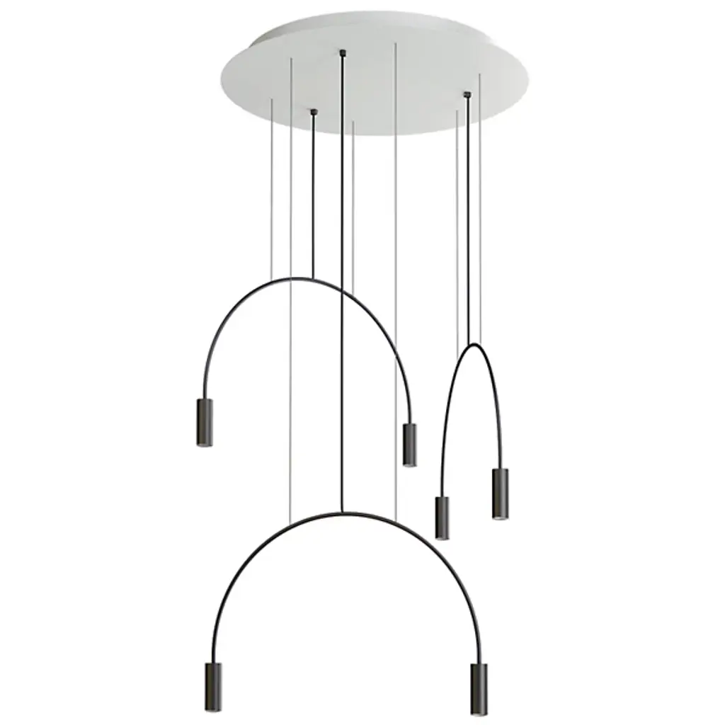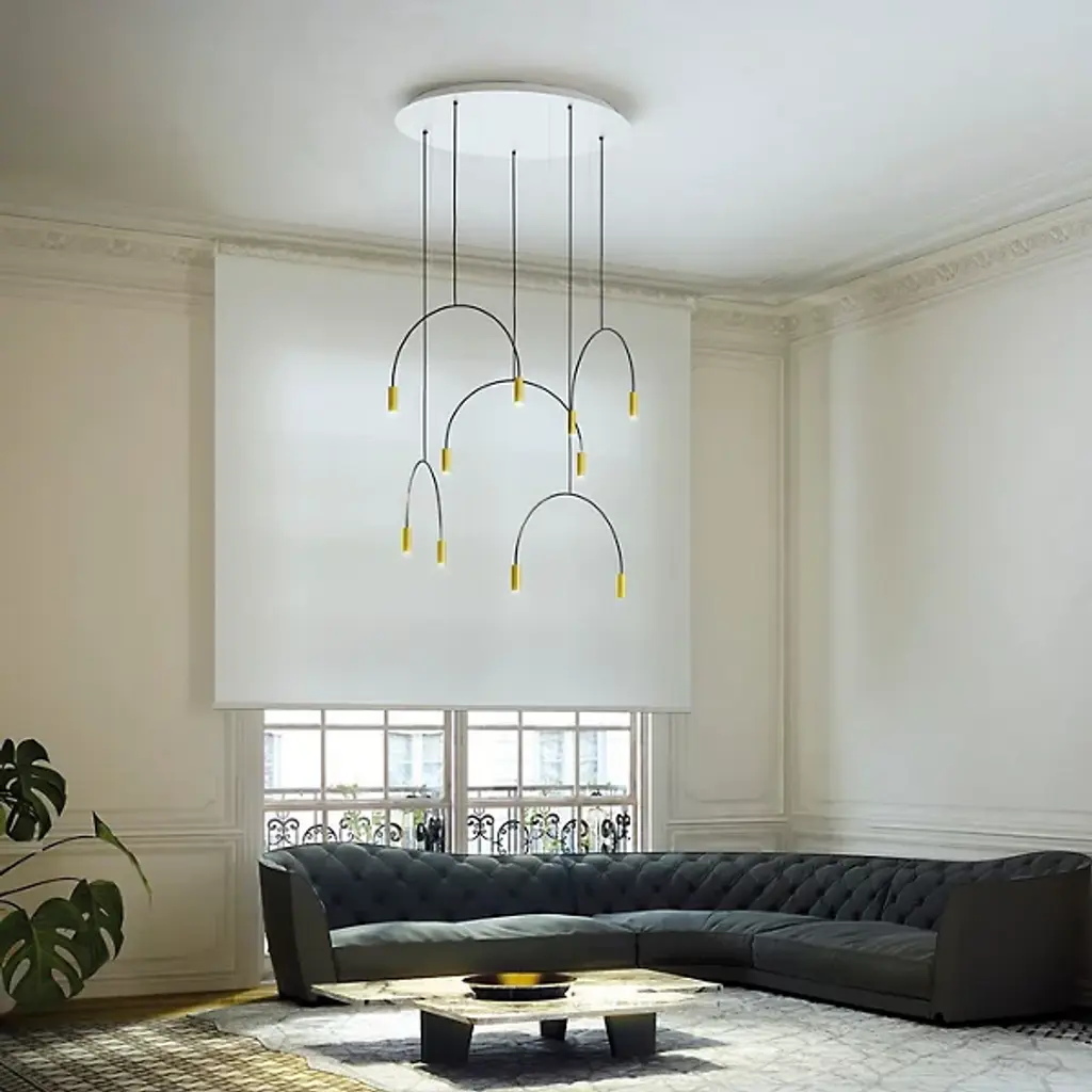 Illuminate a space with the clean light and refined silhouette of the Volta Round LED Multi-Light Pendant by Estiluz. Designed by Barcelona-based Nahtrang Studio, this elegant fixture sends a set of cables dropping from a shared rounded canopy to slender cylindrical shades below. Their integrated LED light emits a soft glow, elevating the ambiance with light and style. From award-winning design duo Daniel Vila and Ester Pujol, this fixture embodies the team’s affinity for formal simplicity and pure shapes.