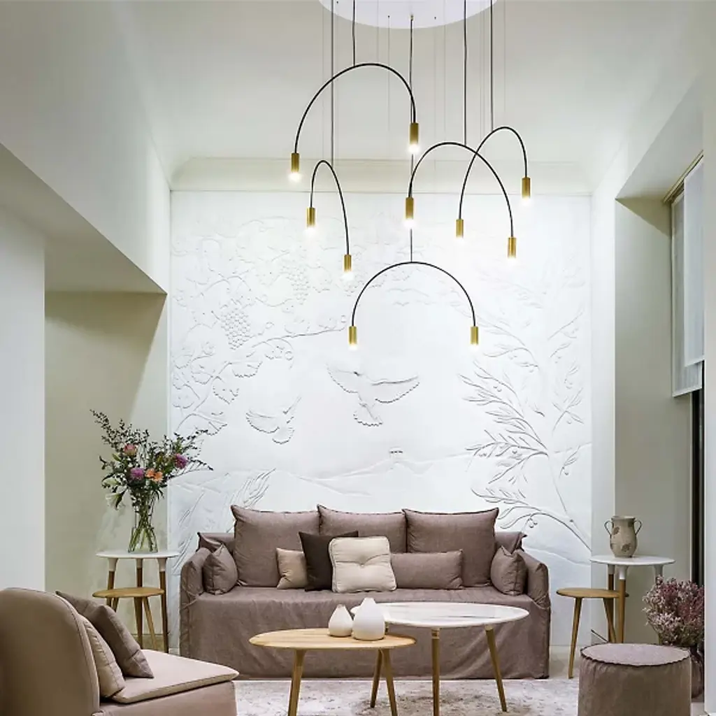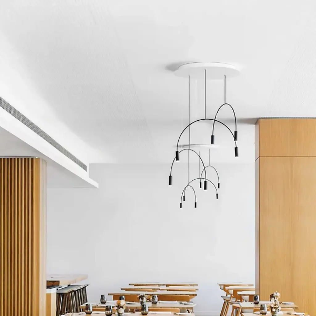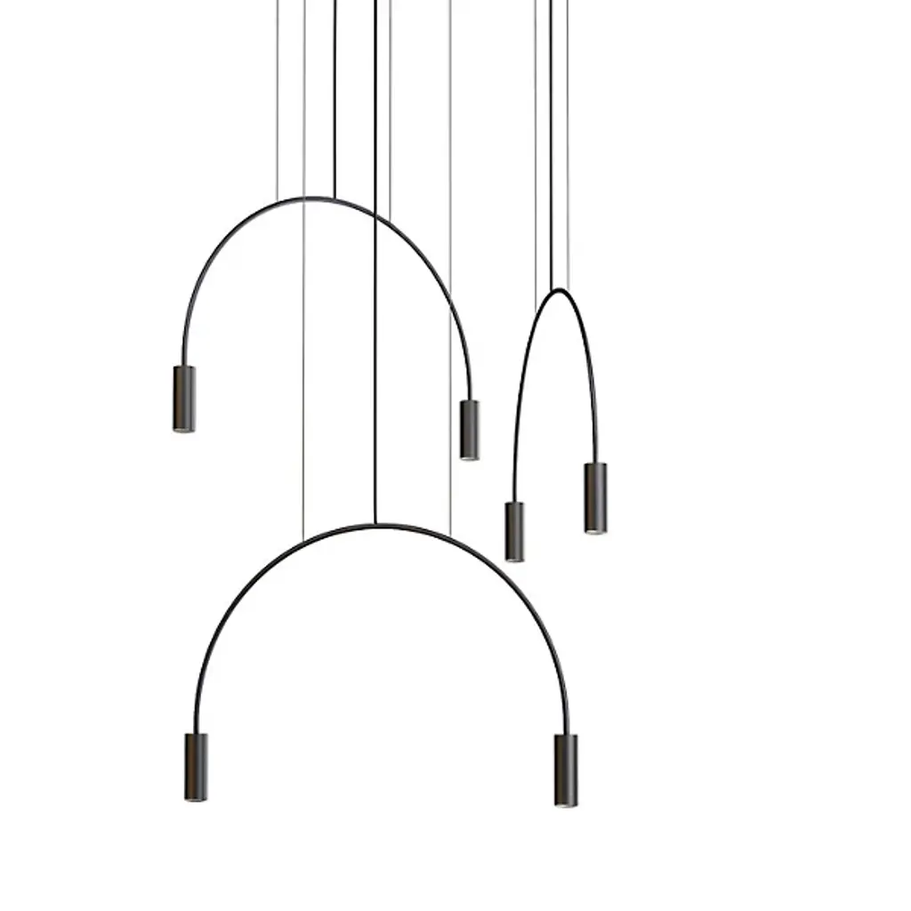 Illuminate a space with the clean light and refined silhouette of the Volta Round LED Multi-Light Pendant by Estiluz. Designed by Barcelona-based Nahtrang Studio, this elegant fixture sends a set of cables dropping from a shared rounded canopy to slender cylindrical shades below. Their integrated LED light emits a soft glow, elevating the ambiance with light and style. From award-winning design duo Daniel Vila and Ester Pujol, this fixture embodies the team’s affinity for formal simplicity and pure shapes.