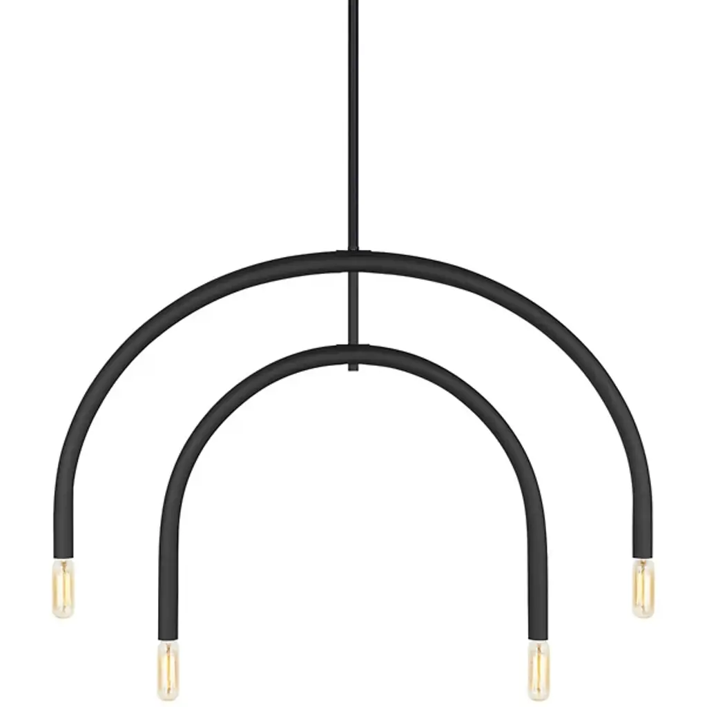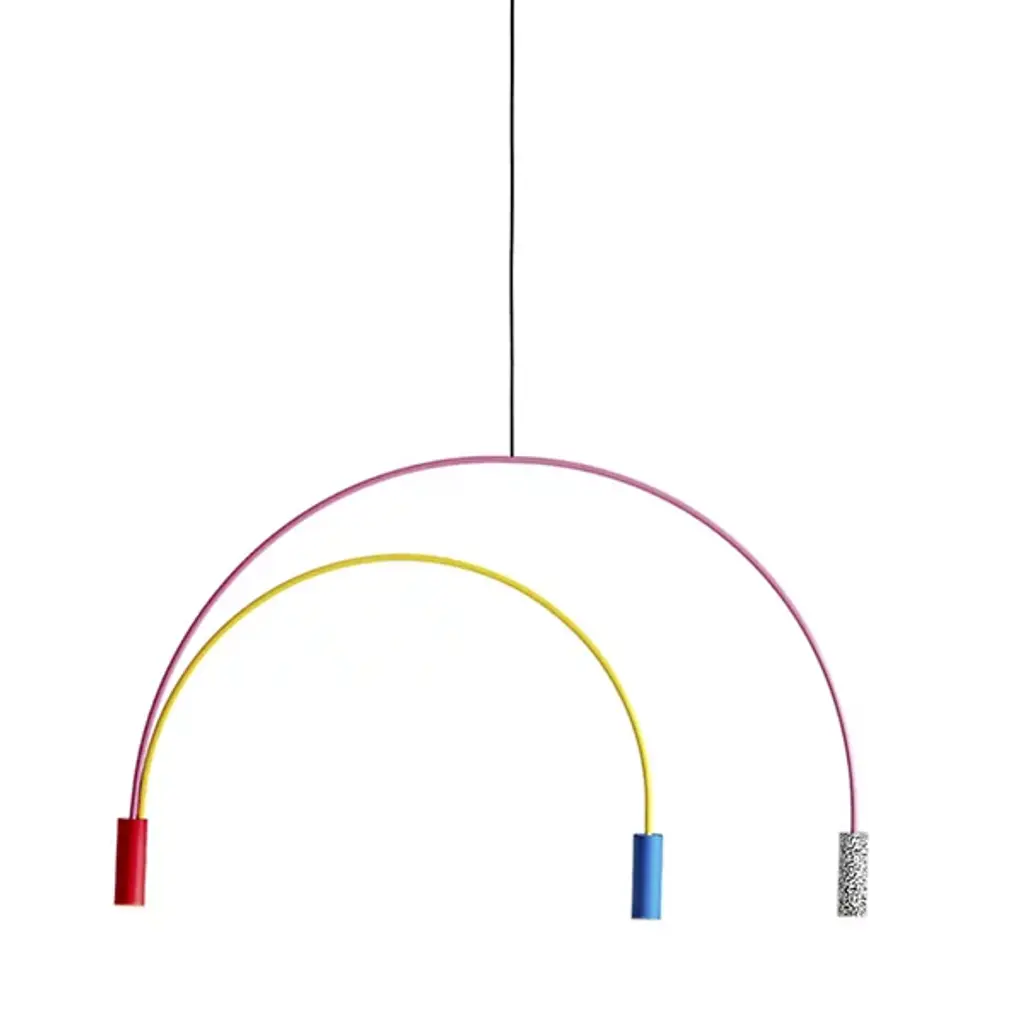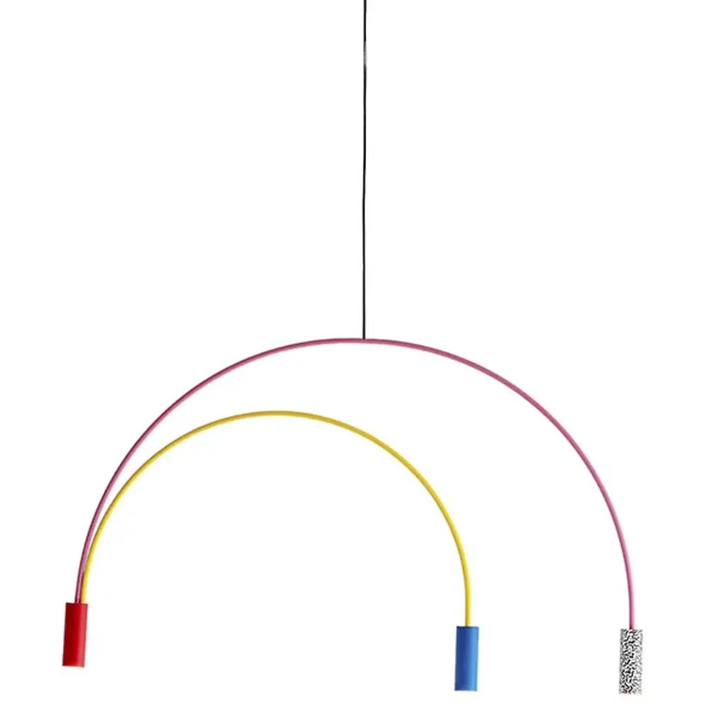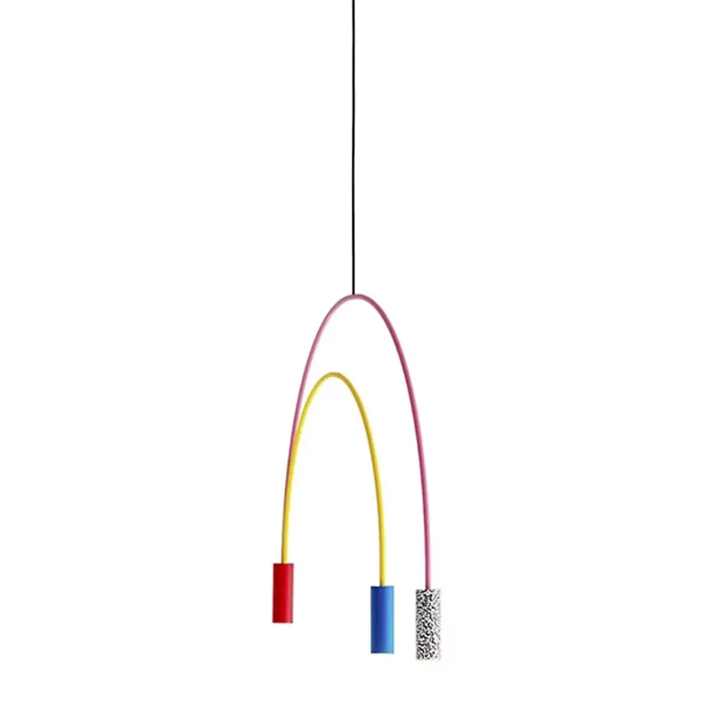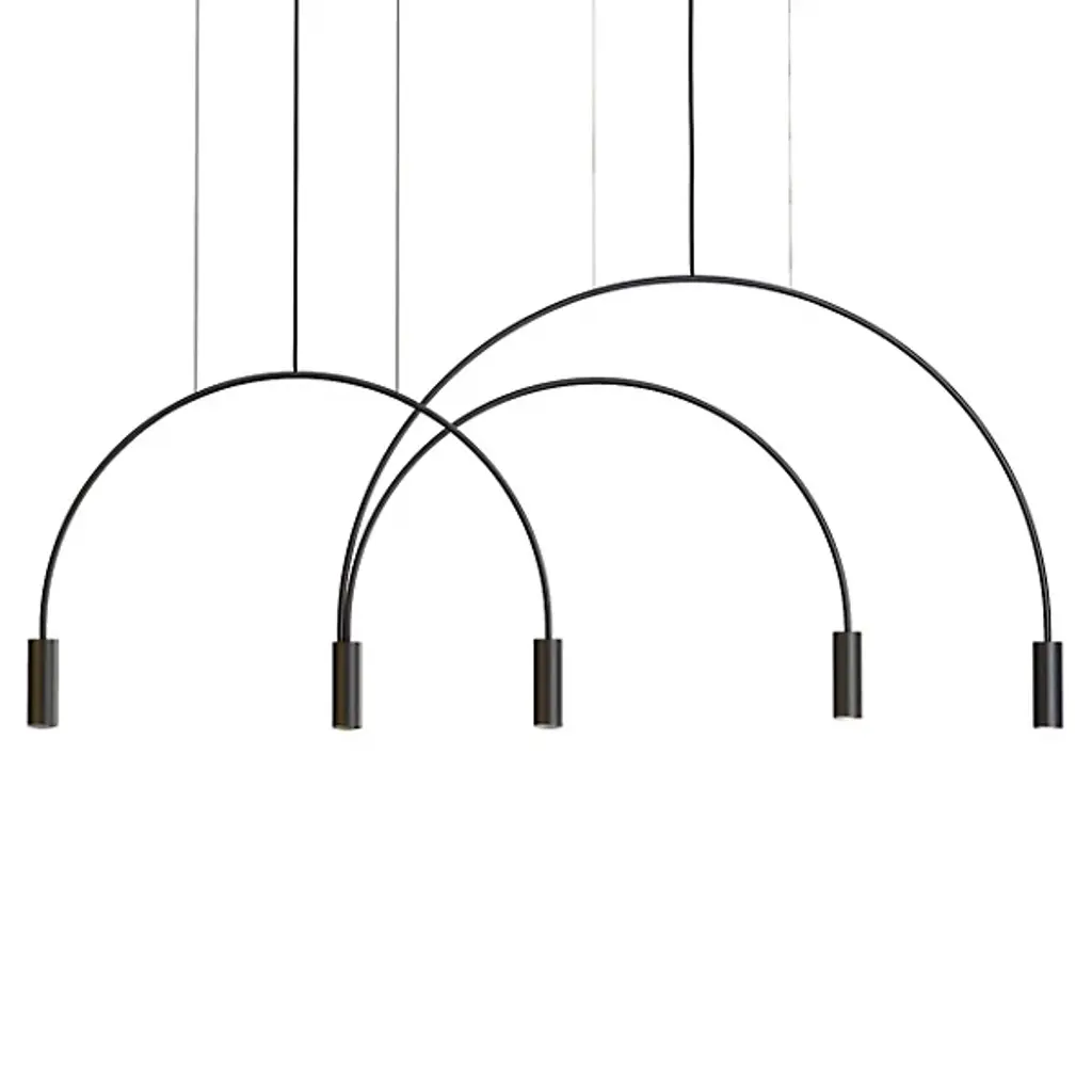 Good things really do come in threes. The Volta Triple Pendant by Estiluz contains two asymmetrical arcs connected at a central point, one smaller than the other, creating a geometric shape with 3 light sources. The Steel canopy and Black frame are super sturdy, while the cylindrical Aluminum head at each end completes the look. Within each head is a 2700K color temperature LED system covered by a Methacrylate Optic lens to diffuse light into a warm glow. This pendant looks as good alone as it does in multiples. Place over a dining room table, kitchen island, or in a living room or bedroom for a focal point for a modern space.