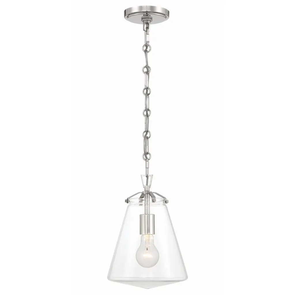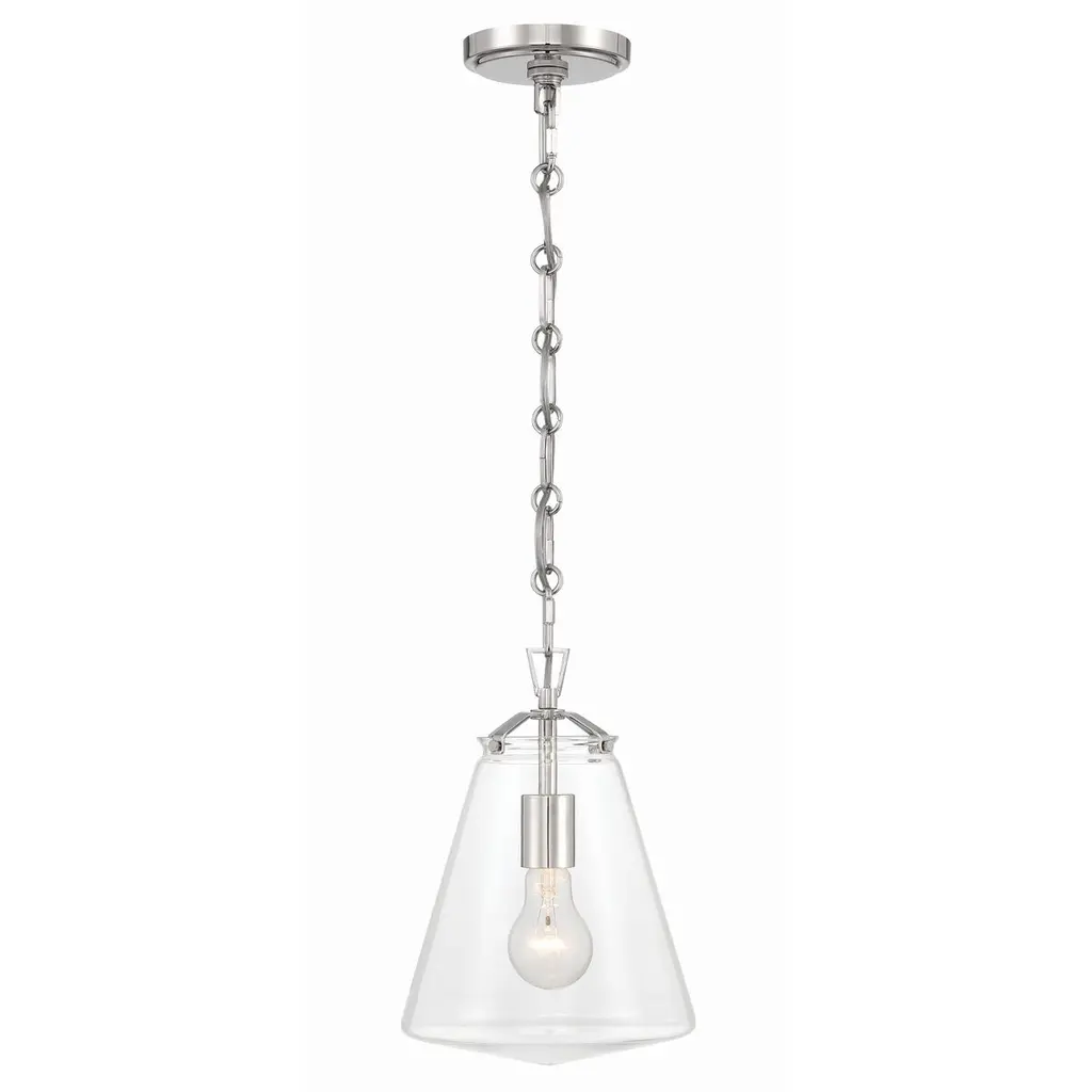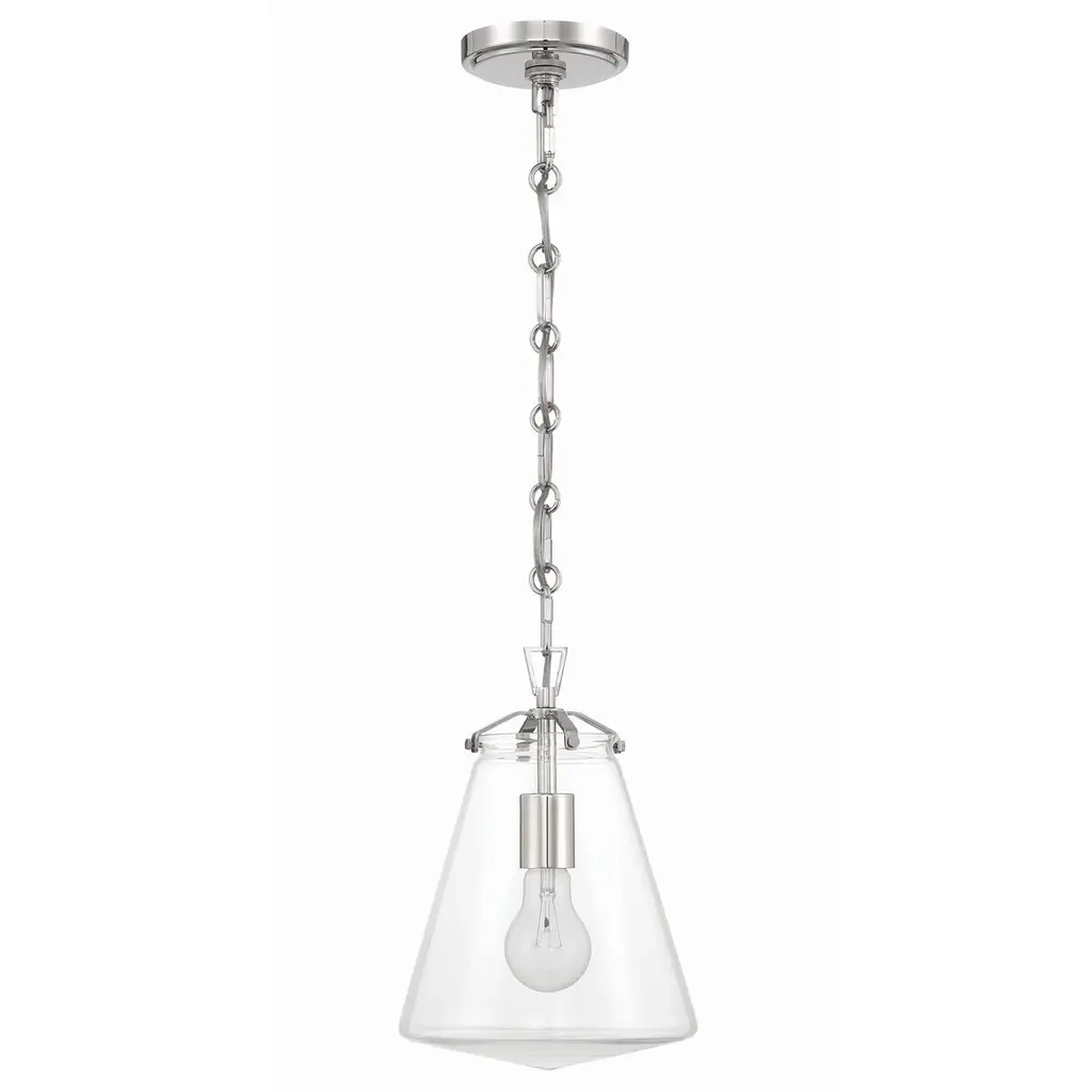 The Voss Collection is a sleek, enduring design with subtle angular details, offered in various finishes and sizes for your unique space. Its clear glass cone-shaped pendant is closed on the bottom and fastened with metal on its open top. The patterned chain detail adds a touch of character to its streamlined design. The Voss Collection is not confined to a single style; it is a versatile design that suits a variety of spaces, from minimalist and modern to classic and eclectic.