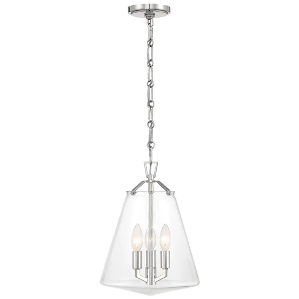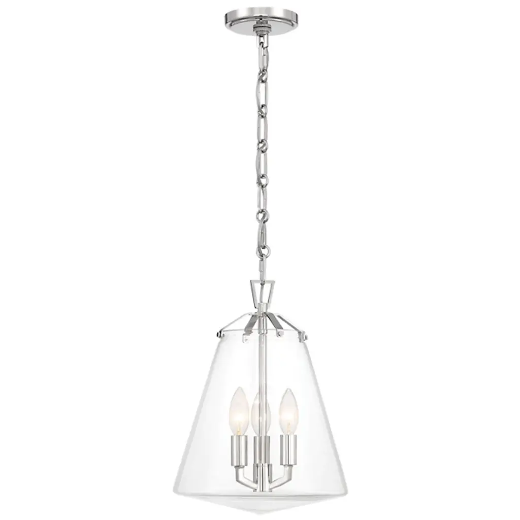 The Voss Pendant from Crystorama features flame-shaped LEDs that bring a luminous glow to your space. These LEDs are supported by steel encasements resting at the ends of upturned arms stemming from a central focal point. Voss features a clear glass shade for refined functionality and a transitional look. This pendant is secured by a chain of links attached to a ceiling canopy. Your sloped-ceiling adaptable fixture boasts adjustable brightness when paired with a separately sold ELV dimmer.