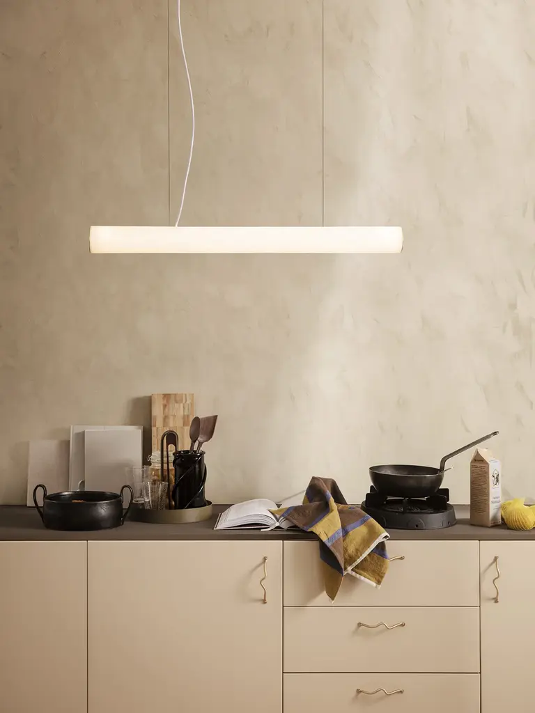 Fusing textural complexity with modern simplicity, the Vuelta Pendant features cylindrical translucent glass with a distinct rippled surface and brushed metal finishes. With an LED light source that emits a soft, diffused light, the Vuelta Pendant comes with an adjustable dimmer remote for ultimate ambiance control. Use the pendant on its own, or hang multiple lamps in a row for a bright, uniformed statement.