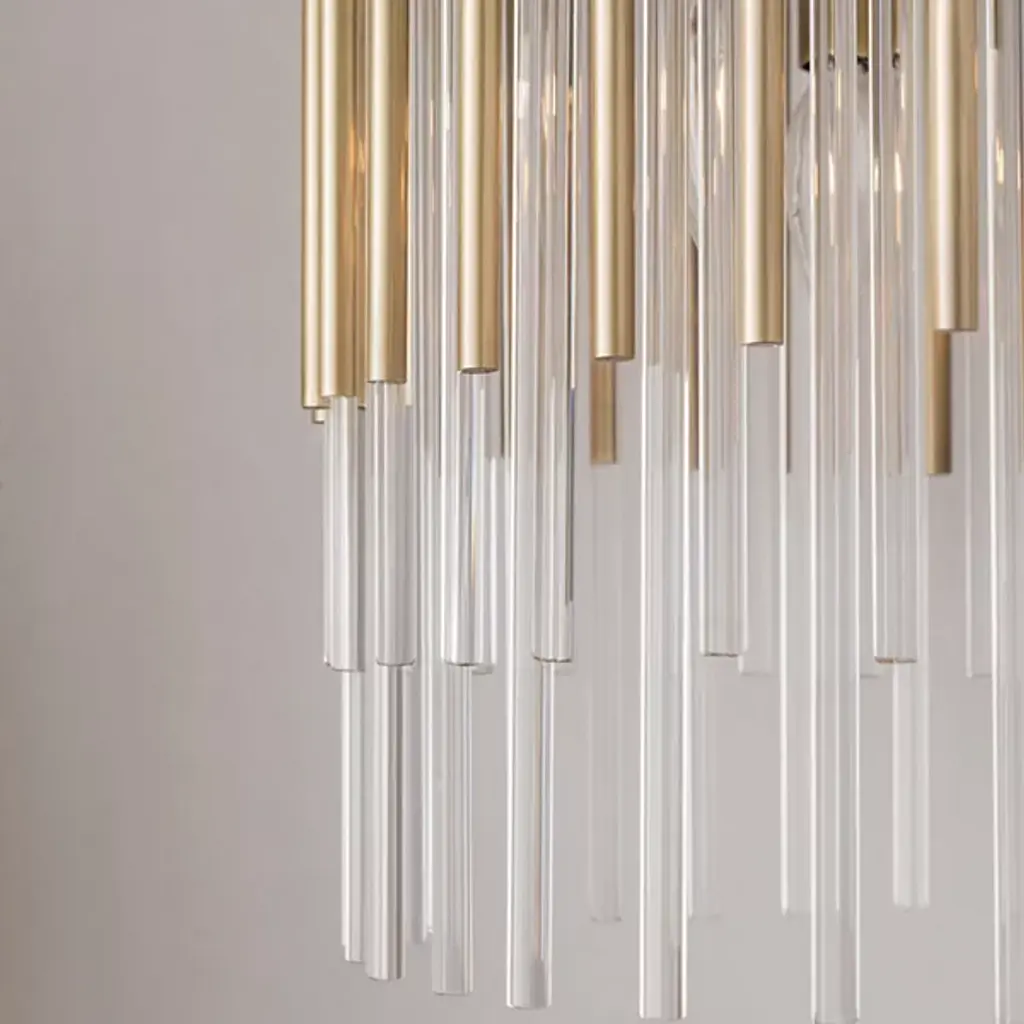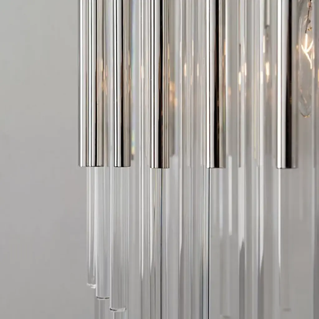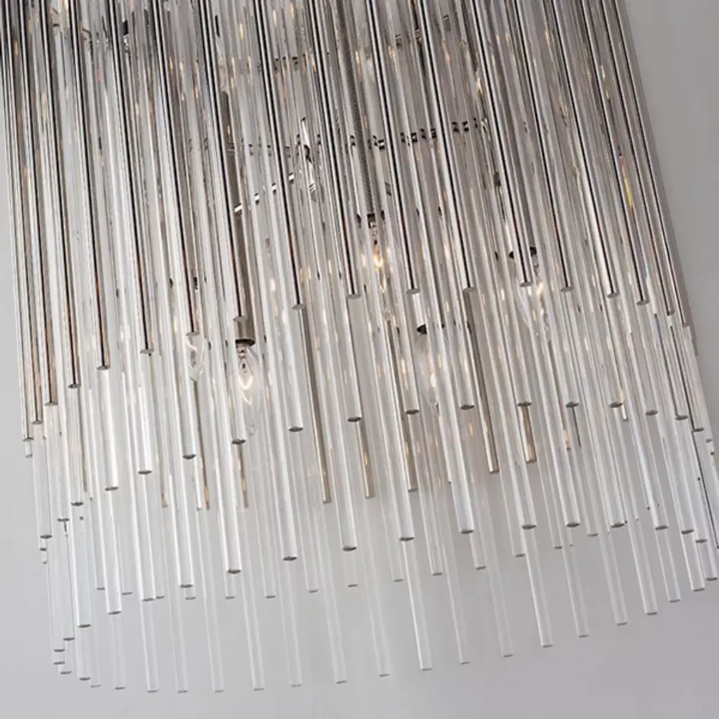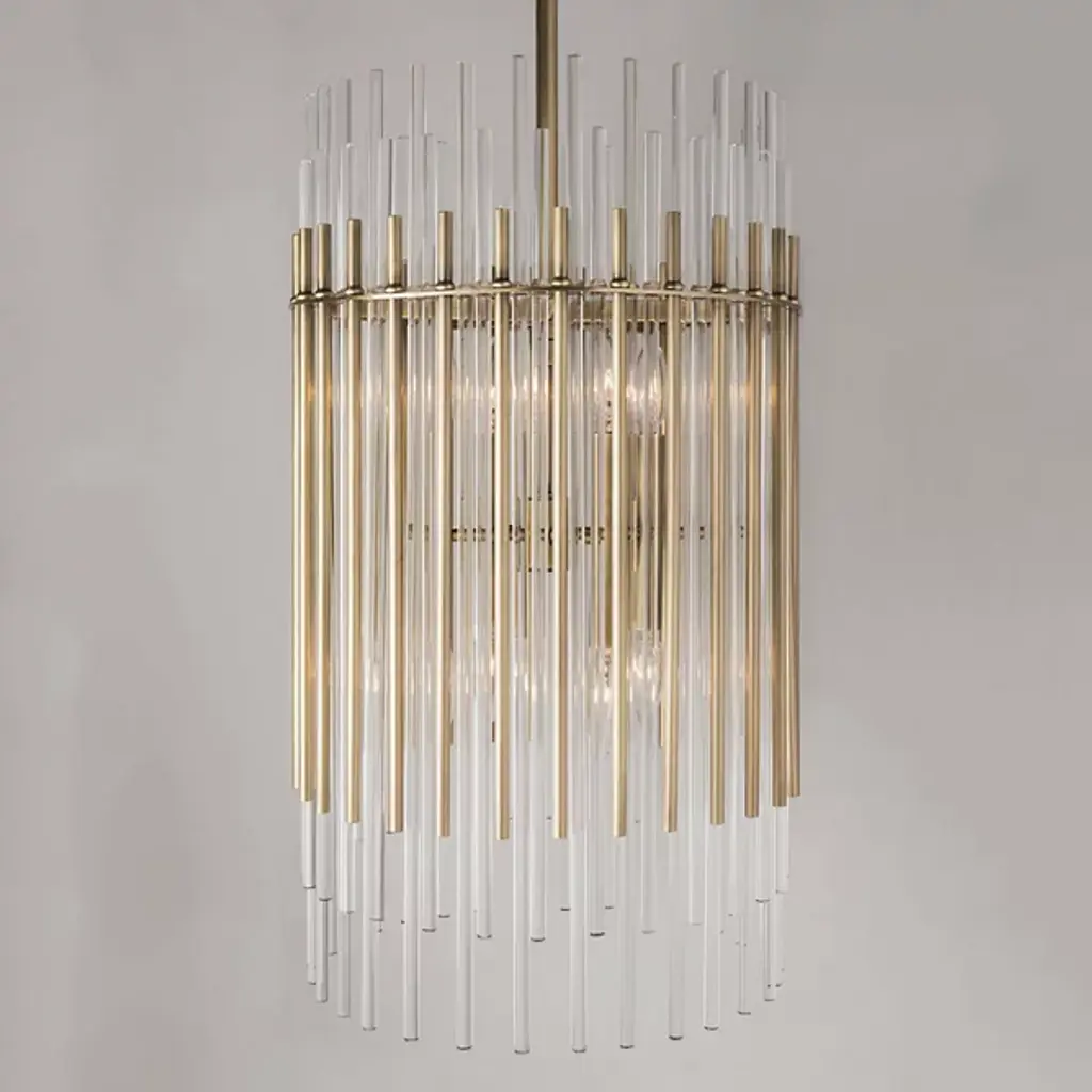 The Hudson Valley Wallis Pendant brings an interesting perspective to ceiling lights. Multiple glass and metal rods are layered at staggered but even lengths which draw the viewer's eye all throughout the piece. The illumination is diffused both horizontally and vertically; bringing a unique edge to pendant lighting.