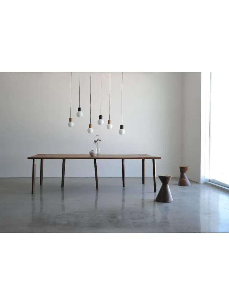 Walnut catkin pendant by Hollis & MorrisDimensions: Diameter 5.5" x height 8.5"Materials: Solid wood, hardwax oil. Hand-blown glass. LED lightbulbs. Cloth-covered powder cord.Also available in natural oak, black oak, white oak, and walnut.All our lamps can be wired according to each country. If sold to the USA it will be wired for the USA for instance.After the long winter, the quickly multiplying catkin is nature’s story of vitality and exuberance — glowing energy hidden within a soft, white bloom. Slightly larger than expected, the playful pendant bears a matte, milky surface anchored by a solid wood stem.Based out of Toronto, Hollis & Morris takes its name from an intersection in Halifax where the company started as a series of garage explorations in design. A steadfast commitment to function with a distinctive approach to design. Hollis & Morris creates handmade furniture and lighting which carefully balances modern and honest designs. Versatile, well crafted, and timeless. Pieces by Hollis & Morris easily complement residential, commercial, and hospitality spaces. Driven by respect towards natural and honest processes, trademark integrations of solid wood and metal celebrate the inherent strengths of each material, resulting in thoughtful, quality pieces made to last with you throughout the years.