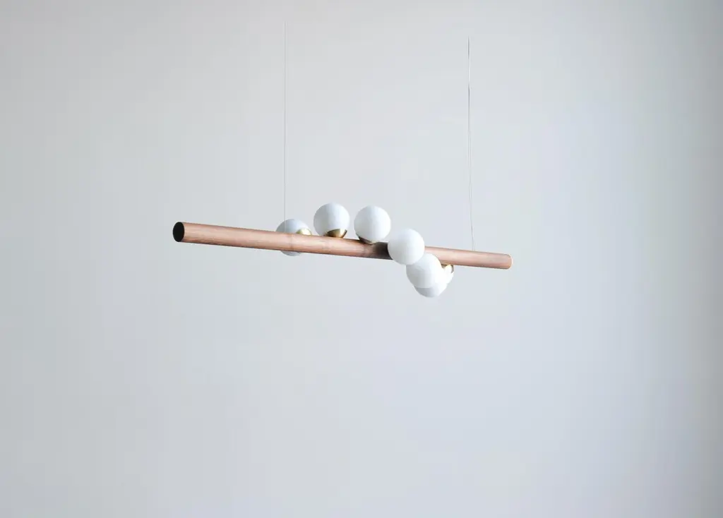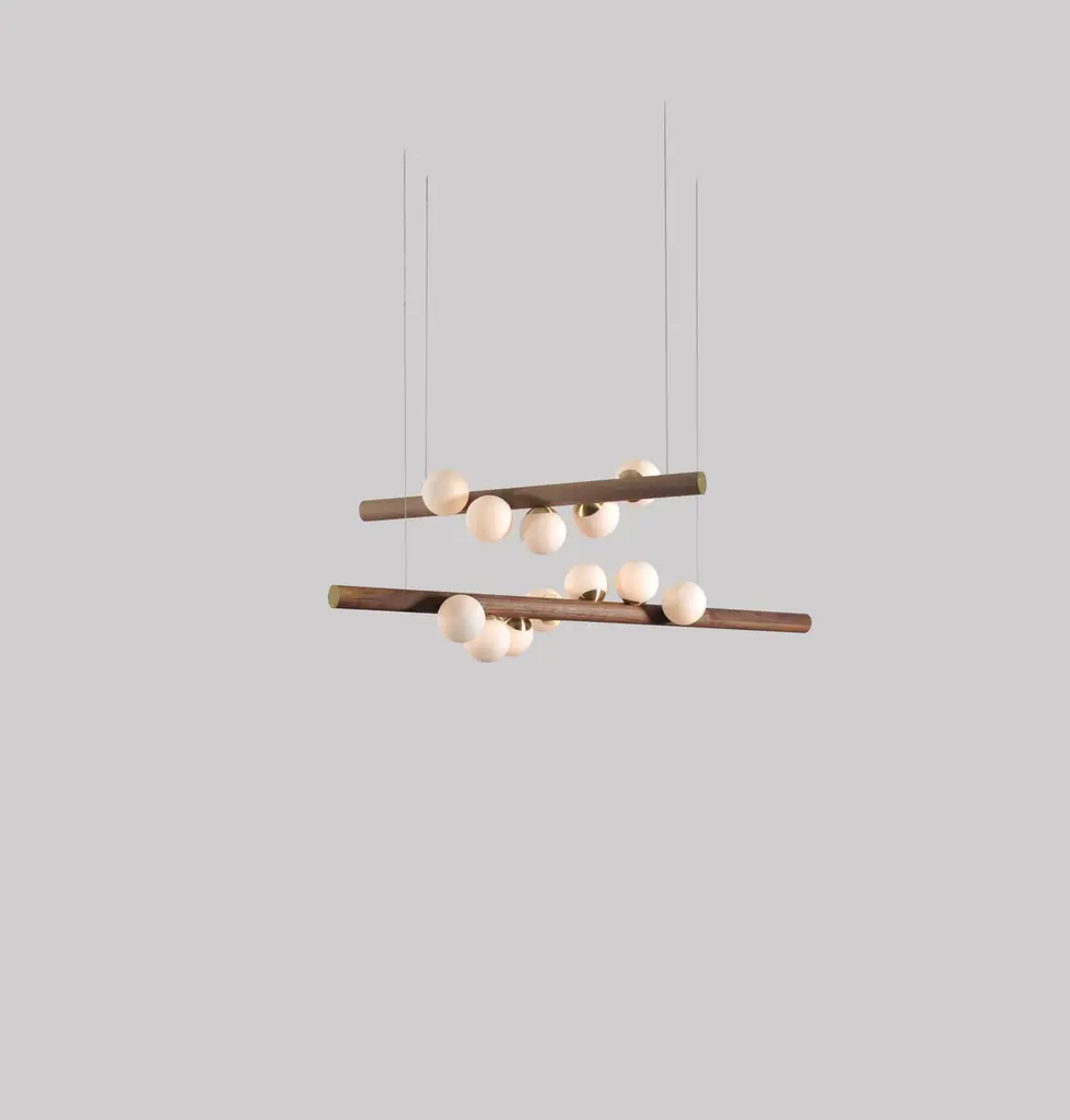 Walnut small willow horizontal pendant by Hollis & MorrisDimensions: 3ft x 36" x diameter 2.25Materials: Solid wood, hardwax oil. Spun brass. Hand-blown glass. LED lightbulbs. Suspension hardware. Also available in natural oak, black oak, white oak, and walnut. Metal finish available in black or white powder-coated or brushed metal finish. Available in sizes small and large.All our lamps can be wired according to each country. If sold to the USA it will be wired for the USA for instance.A suspension light about the interplay of materials and the precision of their connections. Catkin blooms are nestled into solid wood to create the radical silhouette of a newly budded tree branch — designed to suspend solo of in multiples as an ambient canopy of light.Based out of Toronto, Hollis & Morris takes its name from an intersection in Halifax where the company started as a series of garage explorations in design. A steadfast commitment to function with a distinctive approach to design. Hollis & Morris creates handmade furniture and lighting which carefully balances modern and honest designs. Versatile, well crafted, and timeless. Pieces by Hollis & Morris easily complement residential, commercial, and hospitality spaces. Driven by respect towards natural and honest processes, trademark integrations of solid wood and metal celebrate the inherent strengths of each material, resulting in thoughtful, quality pieces made to last with you throughout the years.