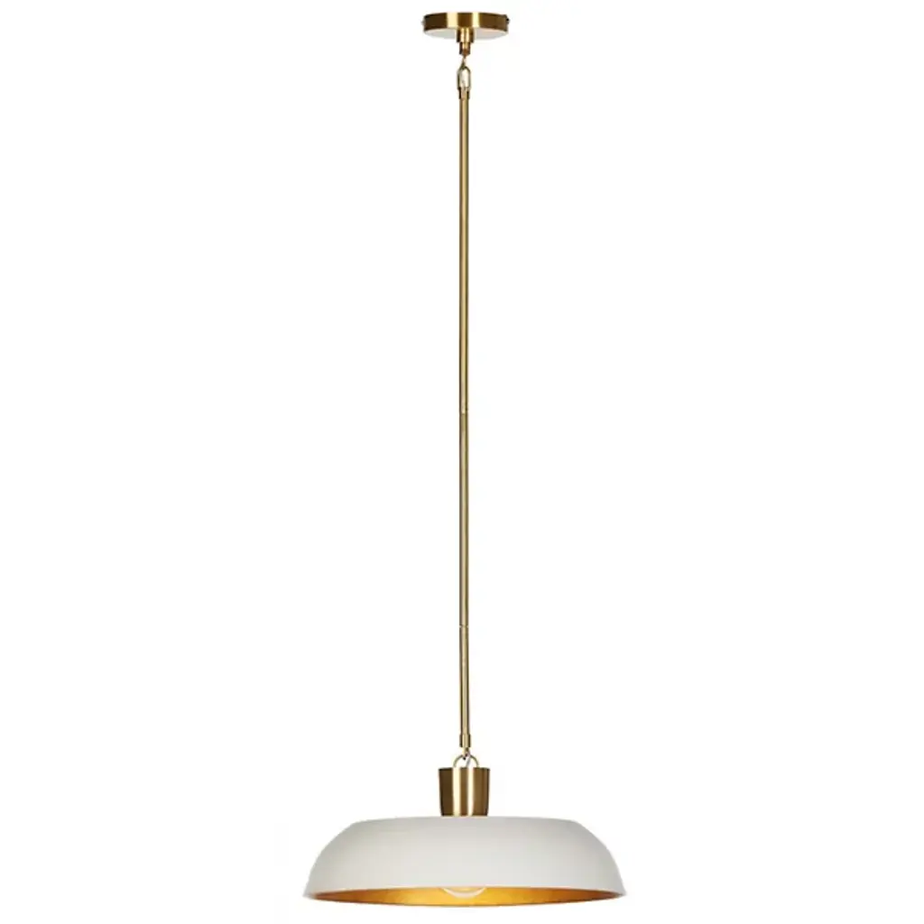 The Walton Pendant from Four Hands exemplifies what’s possible when combining premium materials. This pendant is an artistic blend of brass and thermoplastic. An enameled framework complements the wide-cast aluminum shade suited for housing a brilliant LED that brings illumination to kitchens, offices, and more. Quickly adjust the brightness with a separately sold ELV dimmer. A subtle loop stems from a downrod to attach to the pendant’s crown, giving the finishing touch to this transitionally styled piece.