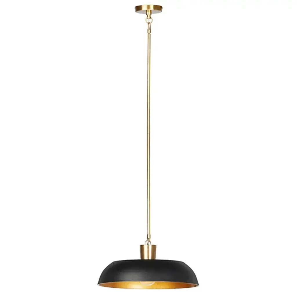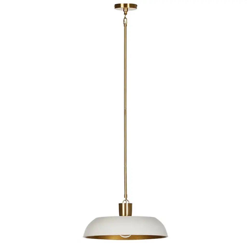 The Walton Pendant from Four Hands exemplifies what’s possible when combining premium materials. This pendant is an artistic blend of brass and thermoplastic. An enameled framework complements the wide-cast aluminum shade suited for housing a brilliant LED that brings illumination to kitchens, offices, and more. Quickly adjust the brightness with a separately sold ELV dimmer. A subtle loop stems from a downrod to attach to the pendant’s crown, giving the finishing touch to this transitionally styled piece.