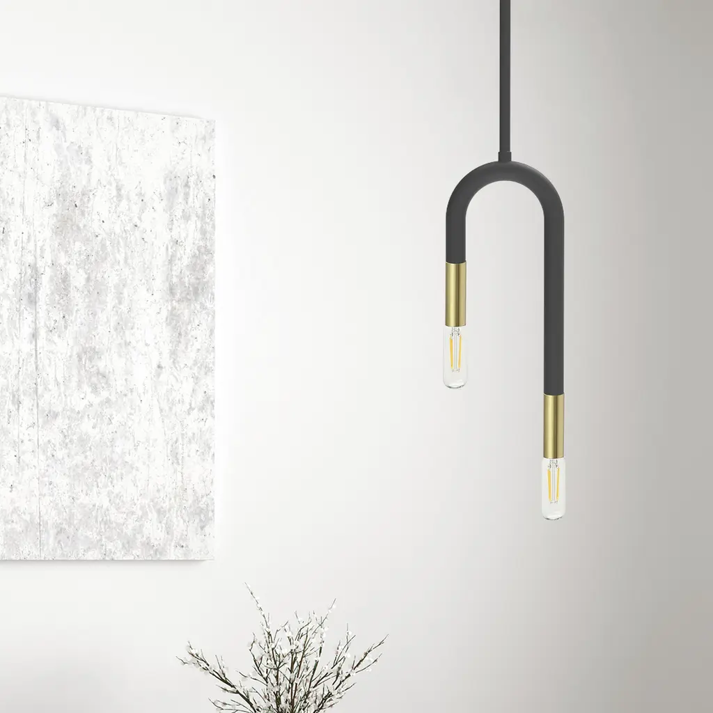 Wand 2 Light 5 Inch Matte Black With Aged Brass Pendant Ceiling Light In Matte Black And Aged Brass