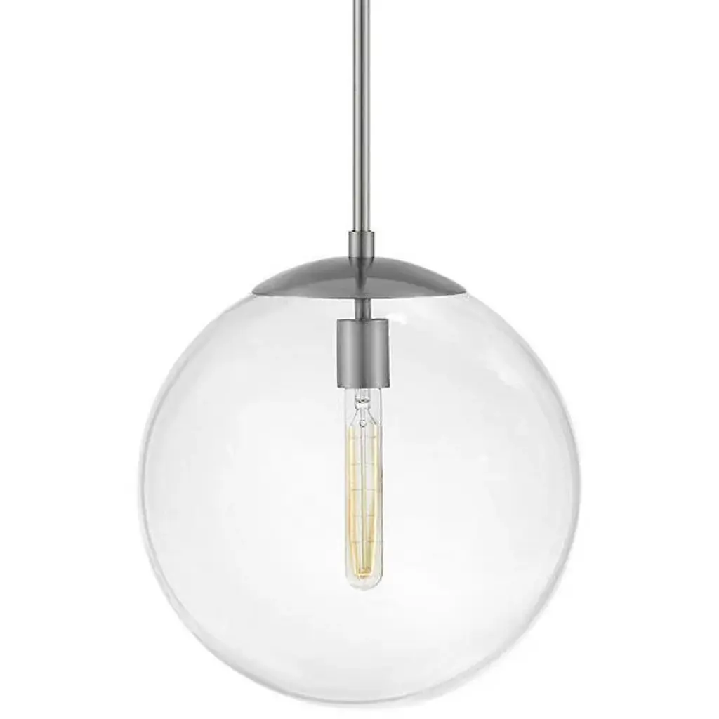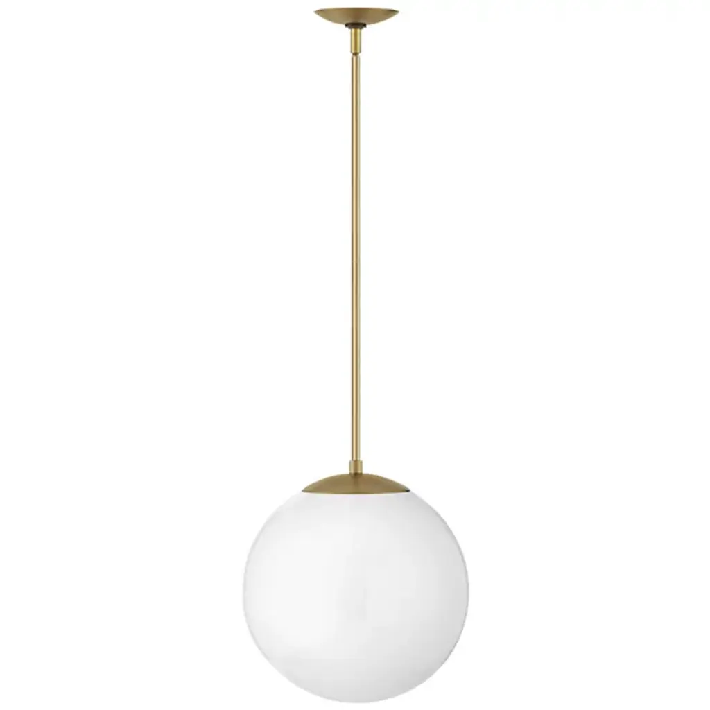 Simple lines for a striking design. The Warby Pendant from Hinkley is a mid-century modern design achieving the fine balance between form and function. Descending from a low-profile canopy with a fine stem, the piece makes it easy to arrange as a series over a table or slot one by itself in a tight space. The steel structure accentuates the brilliant globe at the base with a bold finish. Calling back to mid-century classics, the glass globe catches the eye at any time of day. A golden glaze wraps the glass as light radiates through it. The pendant creates a comfortable ambiance and a relaxed down glow.