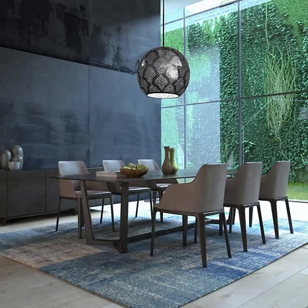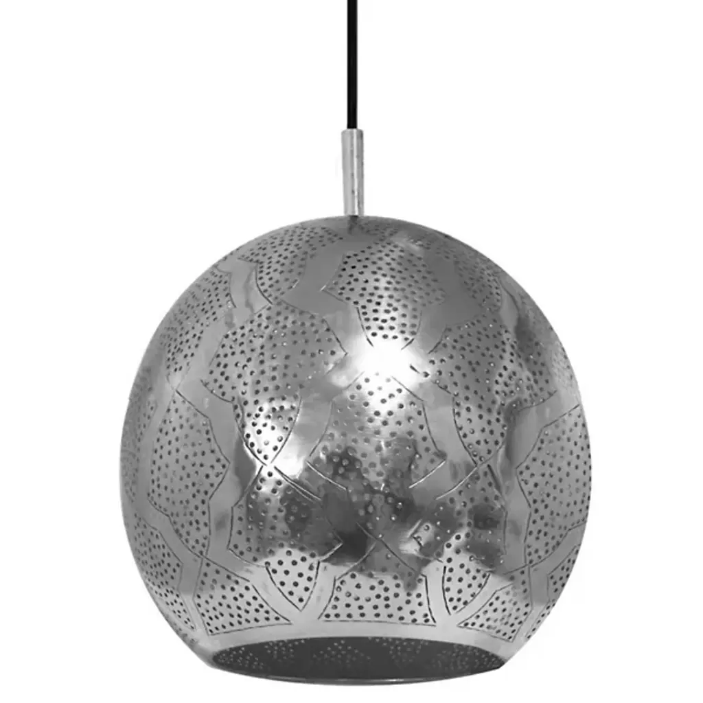 Bring the rich ambiance of the Moroccan caravanserai or coffee shop to your home. The Warda Pendant from Dounia Home blends contemporary engineering with traditional crafting techniques for a singular fixture sure to leave an impression. The low-profile disc canopy suspends a handmade globe shade of locally-sourced metal over a powerful LED. A round opening at the globe’s base sheds direct downlight while hand-punched pinholes in geometric patterns around the entire surface of the globe shade soften the light’s glare when viewed from the side.