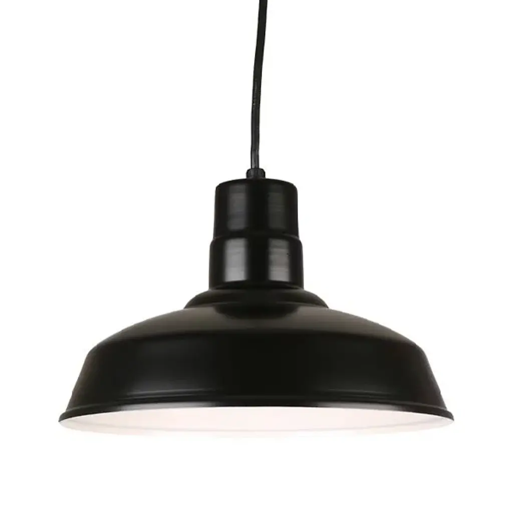 Brighten up your interiors with the intense illumination of the Warehouse Pendant from Hi-Lite. Anchored from above by a sleek canopy, it uses a slender but strong cable to provide power and suspend a single socket below it. This conical socket caps a strong steel shade with a clean interior that flares out in a flat dish shape, Ideal for focusing a powerful pool of light downward without sending a glare to the sides. This fixture is ideal for the workplace, workshop, or home, whether employed singly or in an evenly-spaced series for total coverage.