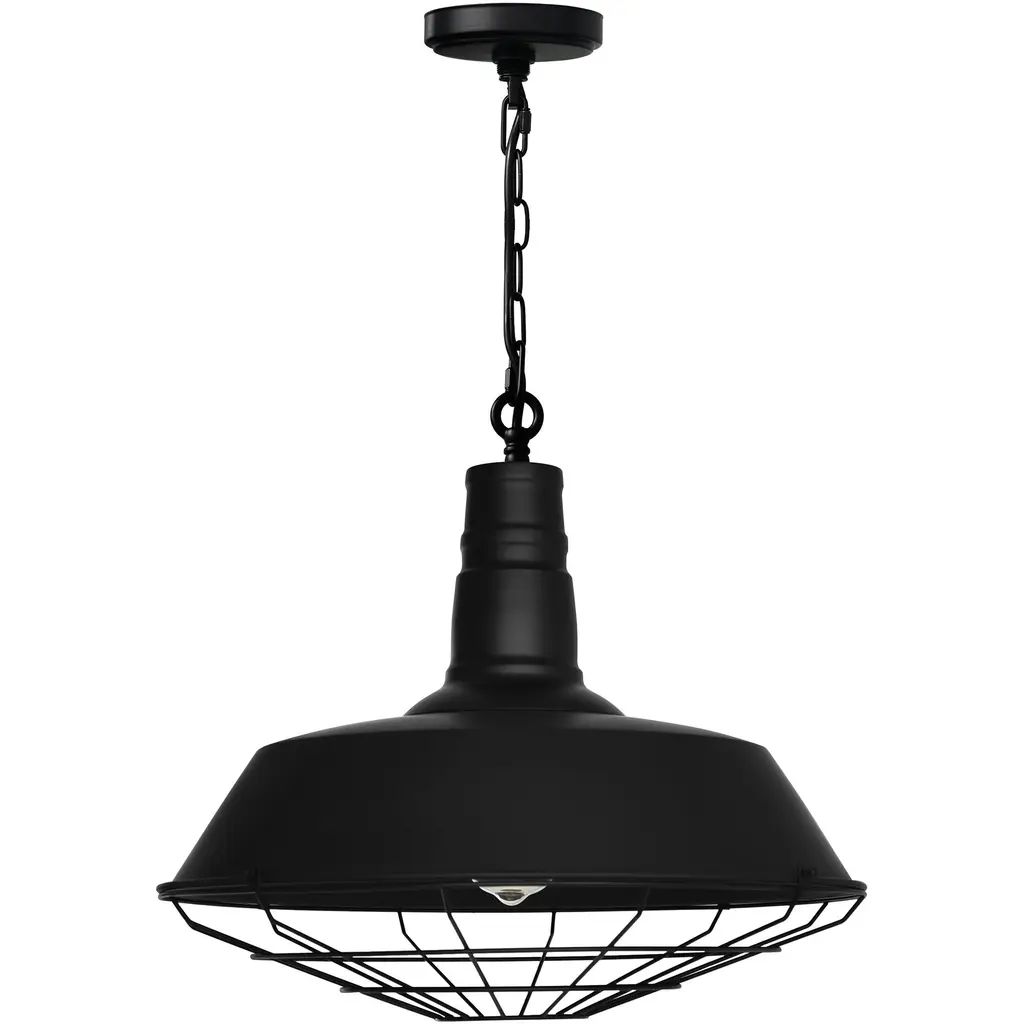 The Warehouse Shade Pendant with Wire Guard from Hi Lite combines form and functionality with elegant results. It's a versatile piece that seamlessly slots inside commercial establishments or the modern home. Heavy-duty aluminum is spun perfectly to create the multi-layered shade. A wire guard at the rim of the shade tapers down in pulsating lines; its good looks double as protection for its single bulb inside. When turned on, the piece produces a filling downlight that sharply silhouettes the wired framework.