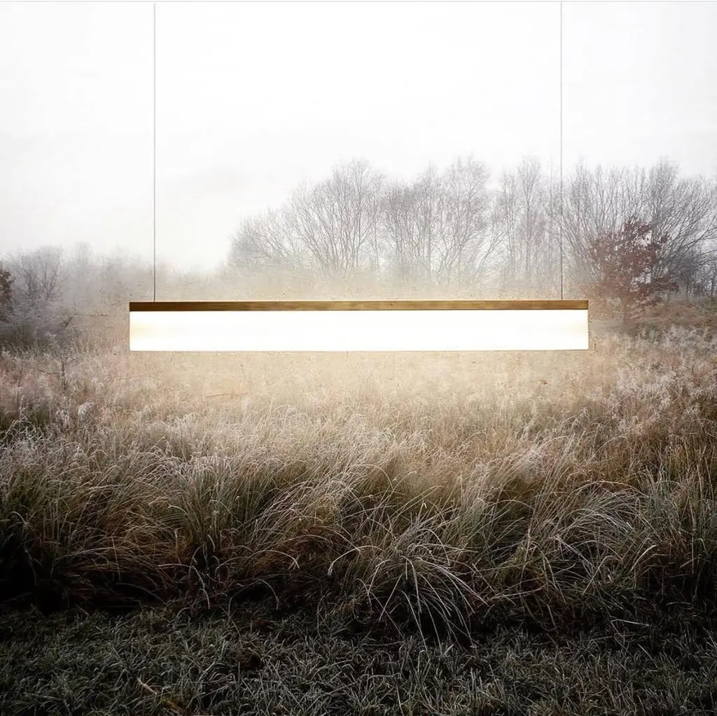 Warm Gold Frame Linear Contemporary Brass Pendant Light By Morghen Studio