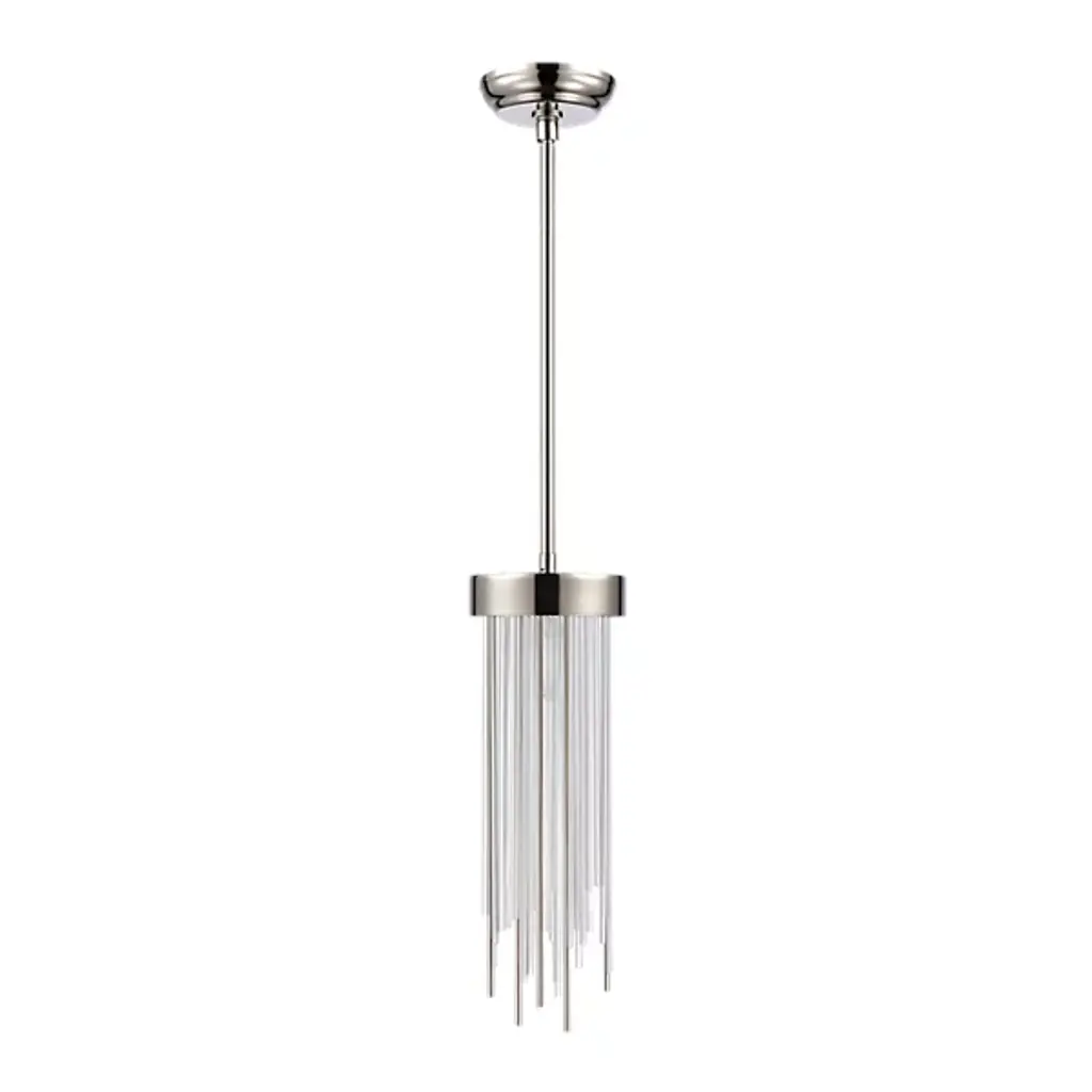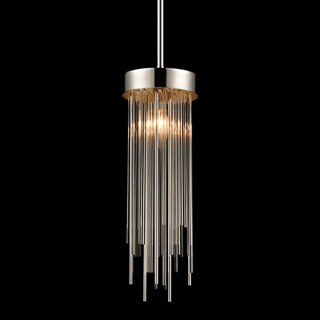 The Waterfall Mini Pendant from Zeev Lighting gives your living space a luxurious appearance. This pendant boasts multi-sized clear curved crystal stems seamlessly combined with solid steel stems, creating a captivating visual effect. Illuminated by a brilliant LED, this pendant radiates brilliance and boasts dimming capabilities with a separately sold ELV dimmer. Elevate your space with the contemporary allure of this sloped-ceiling adaptable mini pendant. Waterfall seamlessly blends sophistication and functionality.