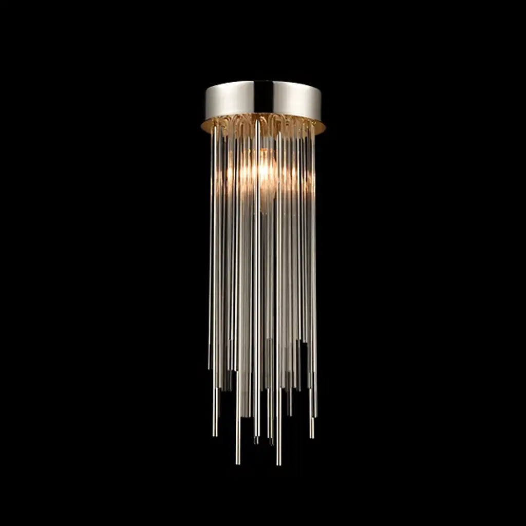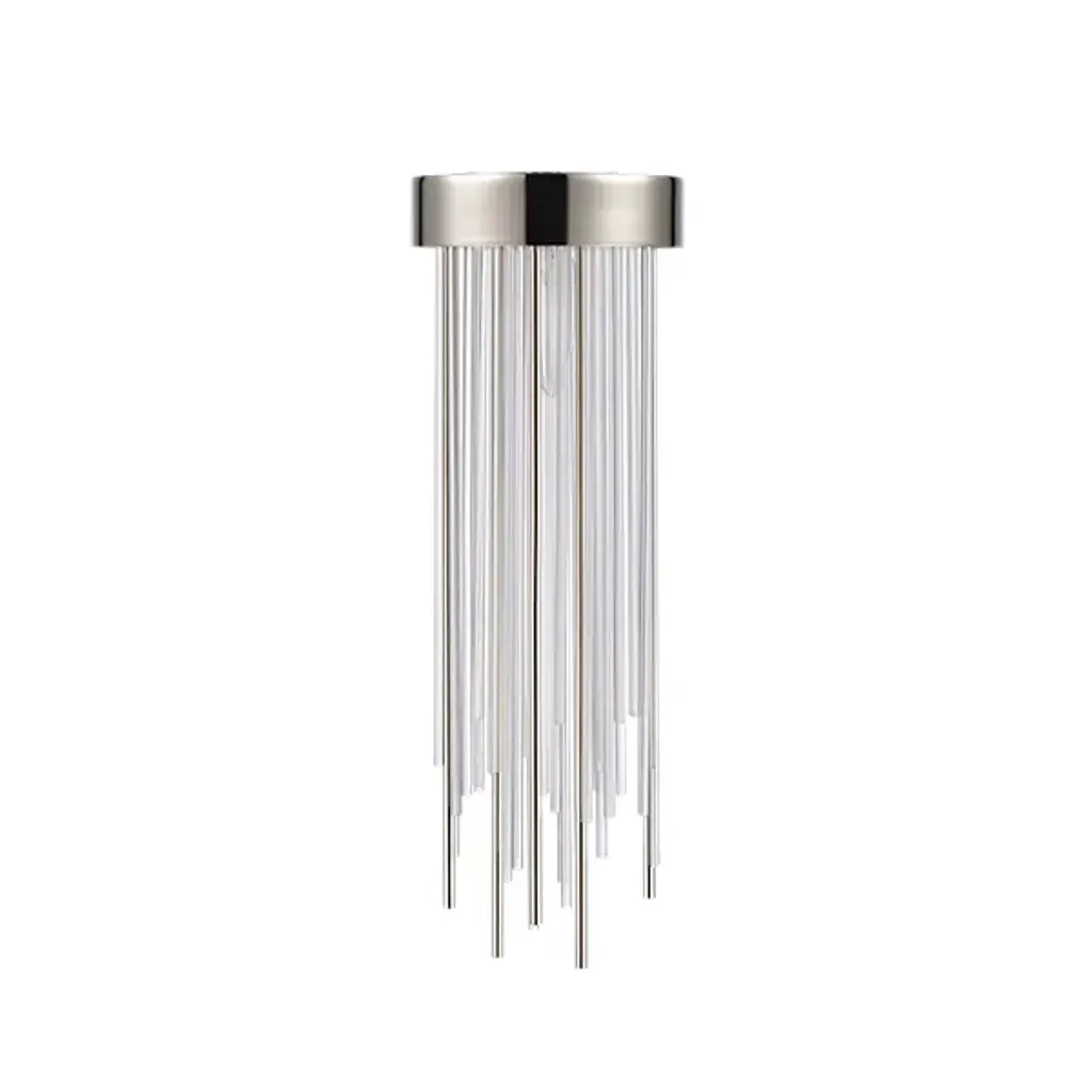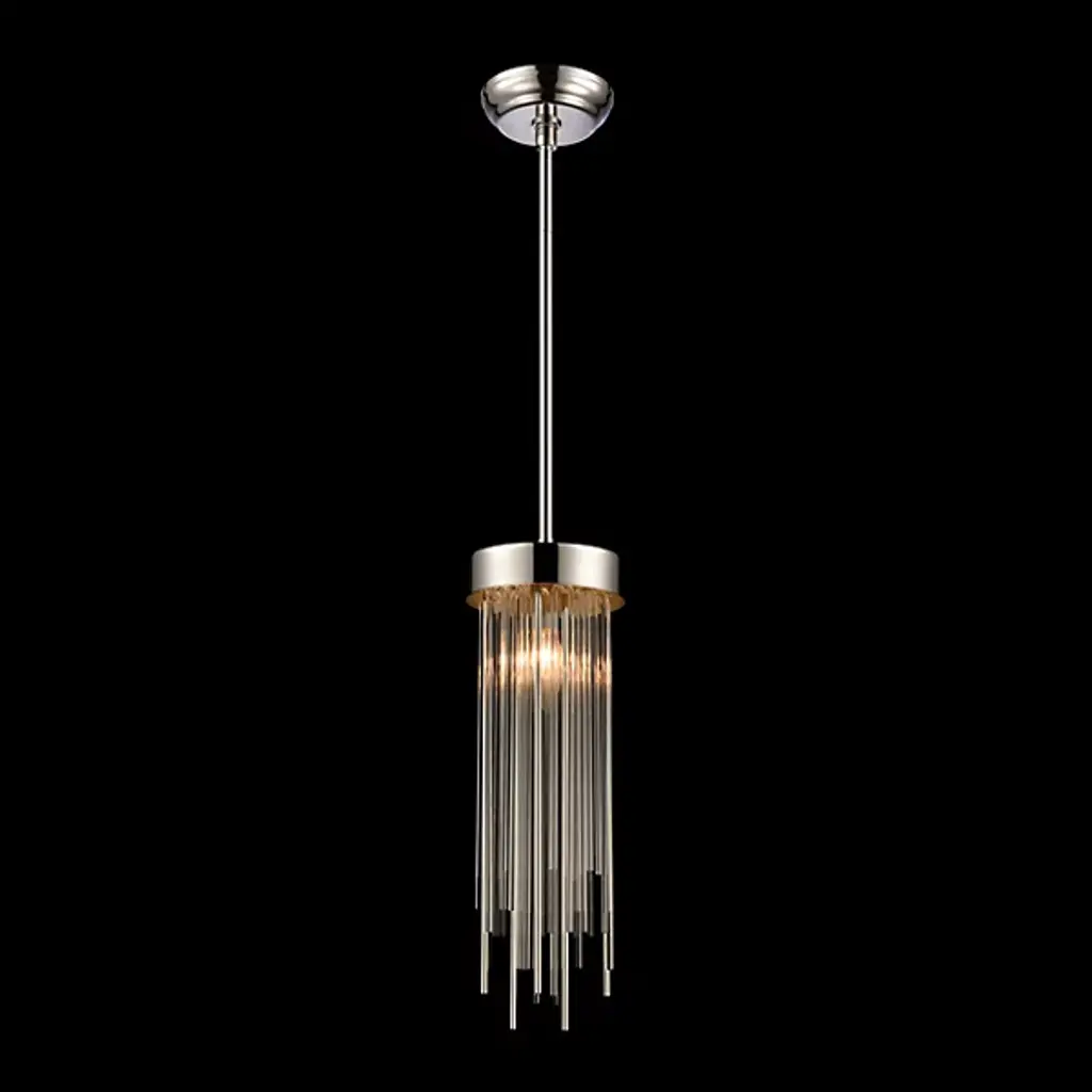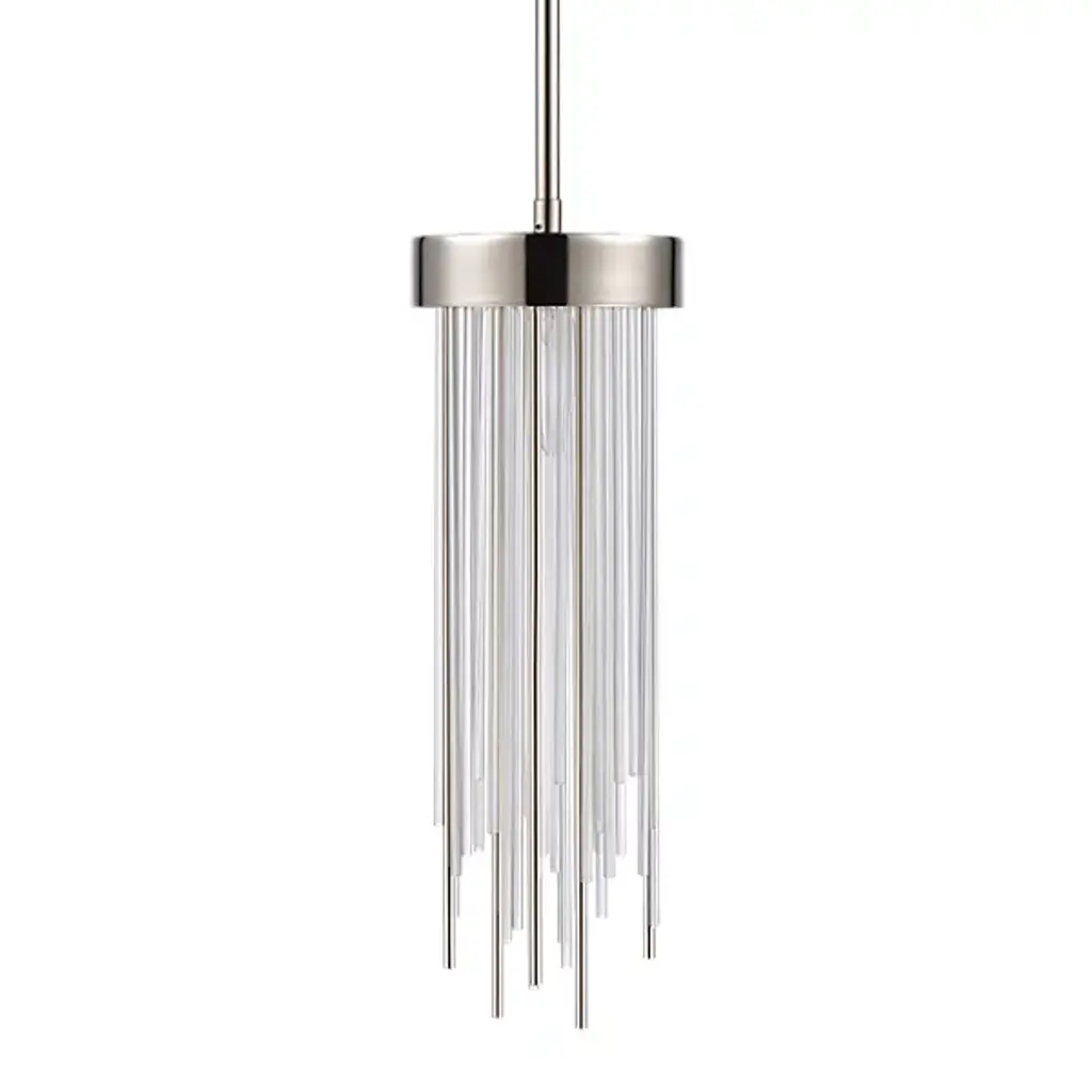The Waterfall Mini Pendant from Zeev Lighting gives your living space a luxurious appearance. This pendant boasts multi-sized clear curved crystal stems seamlessly combined with solid steel stems, creating a captivating visual effect. Illuminated by a brilliant LED, this pendant radiates brilliance and boasts dimming capabilities with a separately sold ELV dimmer. Elevate your space with the contemporary allure of this sloped-ceiling adaptable mini pendant. Waterfall seamlessly blends sophistication and functionality.