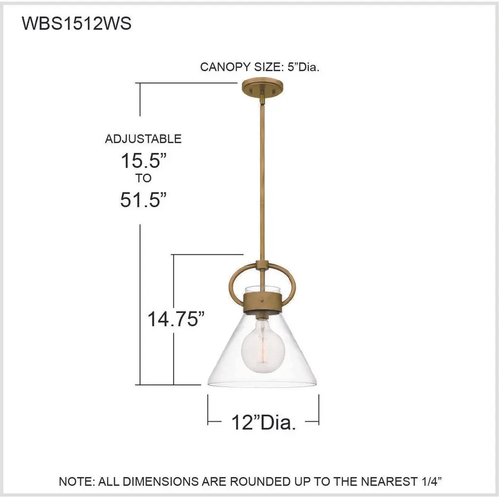 Webster 1 Light 12 Inch Weathered Brass Mini Pendant Ceiling Light, Small