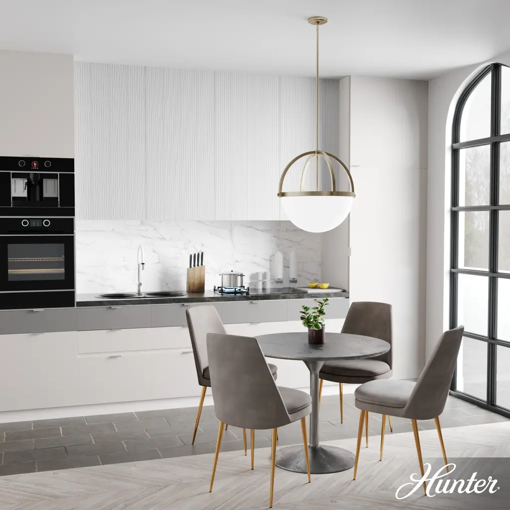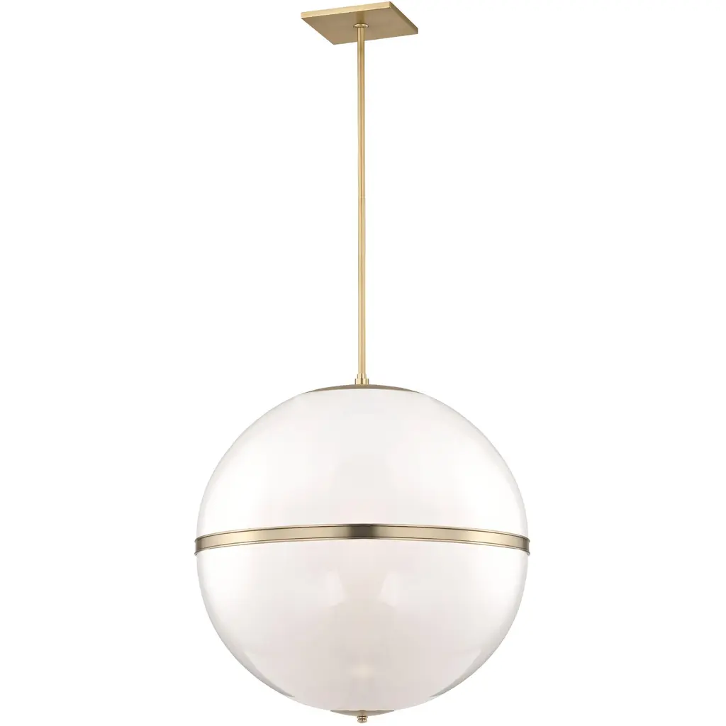 The Edwardian style of the Wedgefield 4 light pendant globe is part cased-white glass and part geometric framing. The design of this light allows for optimal illumination in your space. Add an artful touch to your living and dining rooms with the Wedgefield.