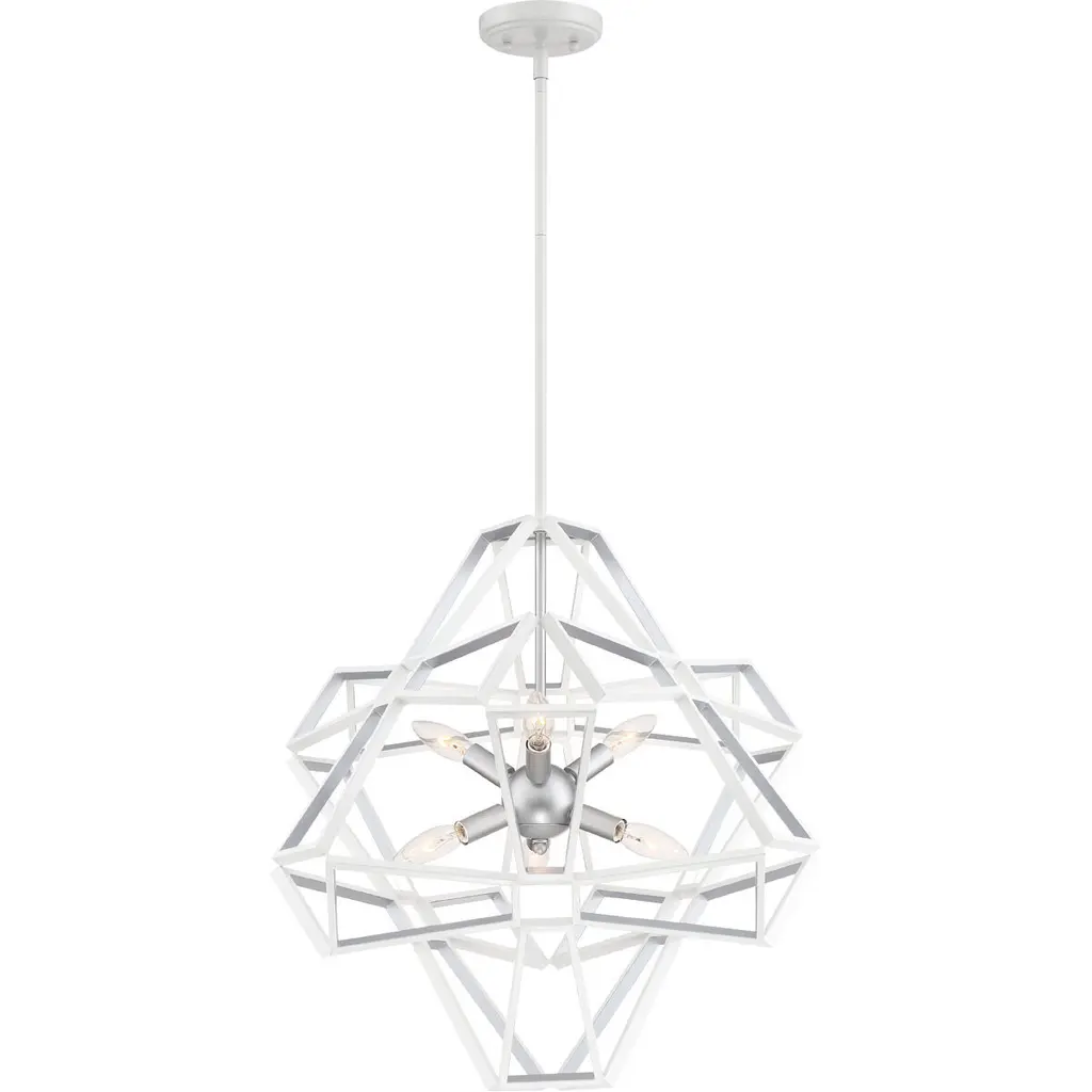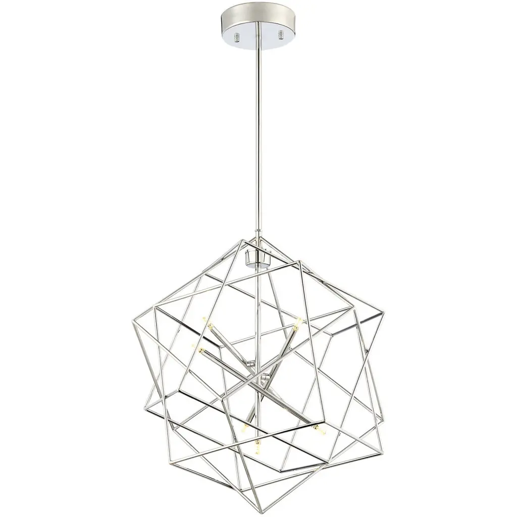 Geometric shapes in a modern package. The Wells 3 Spoke Pendant from Gabriel Scott features a sequence of interconnected shapes, creating a one-of-a-kind lighting experience. Suitable for both indoor and outdoor applications, these sculptural and organic shapes extend out from long branches, allowing this metallic fixture to create infinite silhouette options. The branches and lights hang from a simple canopy and matching downrod. This modular pendant is ideally suited for contemporary corridors, hallways, and living rooms.