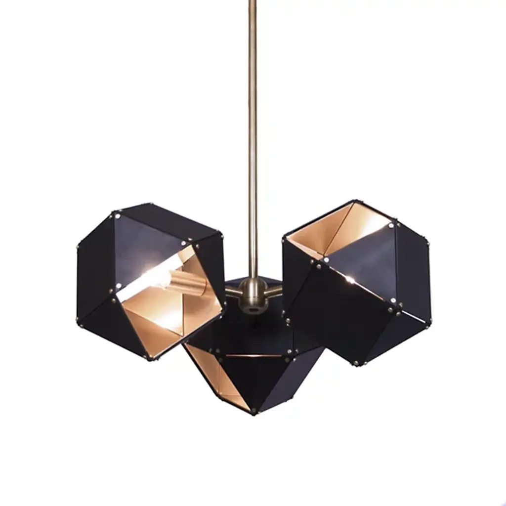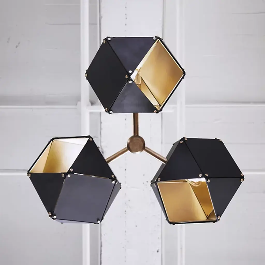 Geometric shapes in a modern package. The Wells 3 Spoke Pendant from Gabriel Scott features a sequence of interconnected shapes, creating a one-of-a-kind lighting experience. Suitable for both indoor and outdoor applications, these sculptural and organic shapes extend out from long branches, allowing this metallic fixture to create infinite silhouette options. The branches and lights hang from a simple canopy and matching downrod. This modular pendant is ideally suited for contemporary corridors, hallways, and living rooms.