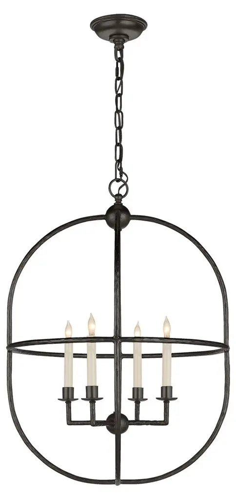 A forged metal sphere surrounds a series of thin bulb bases in this airy, delicate design. Windowless and open, Wesley sheds enough bright, ample light to fill any space. Pendant is available in three sizes and comes in Aged Iron, Gold Leaf and White Plaster finishes.