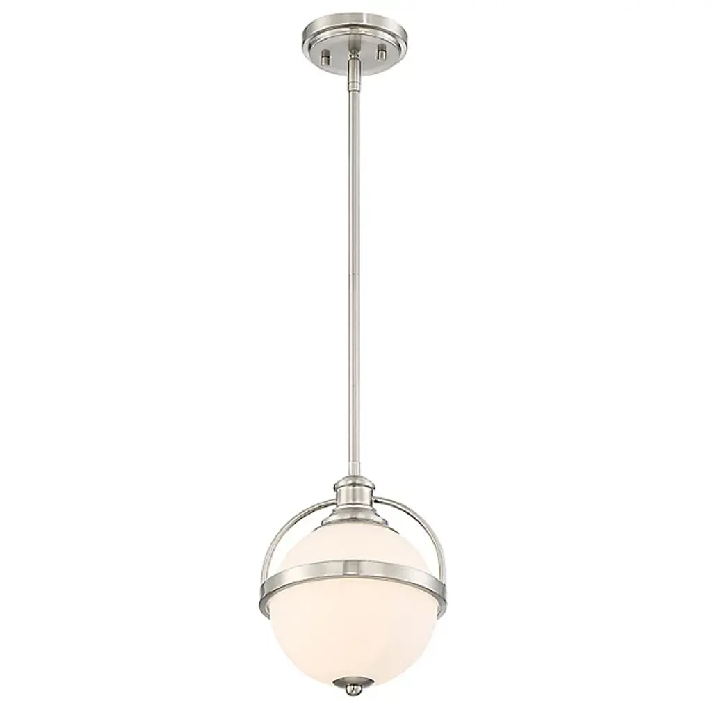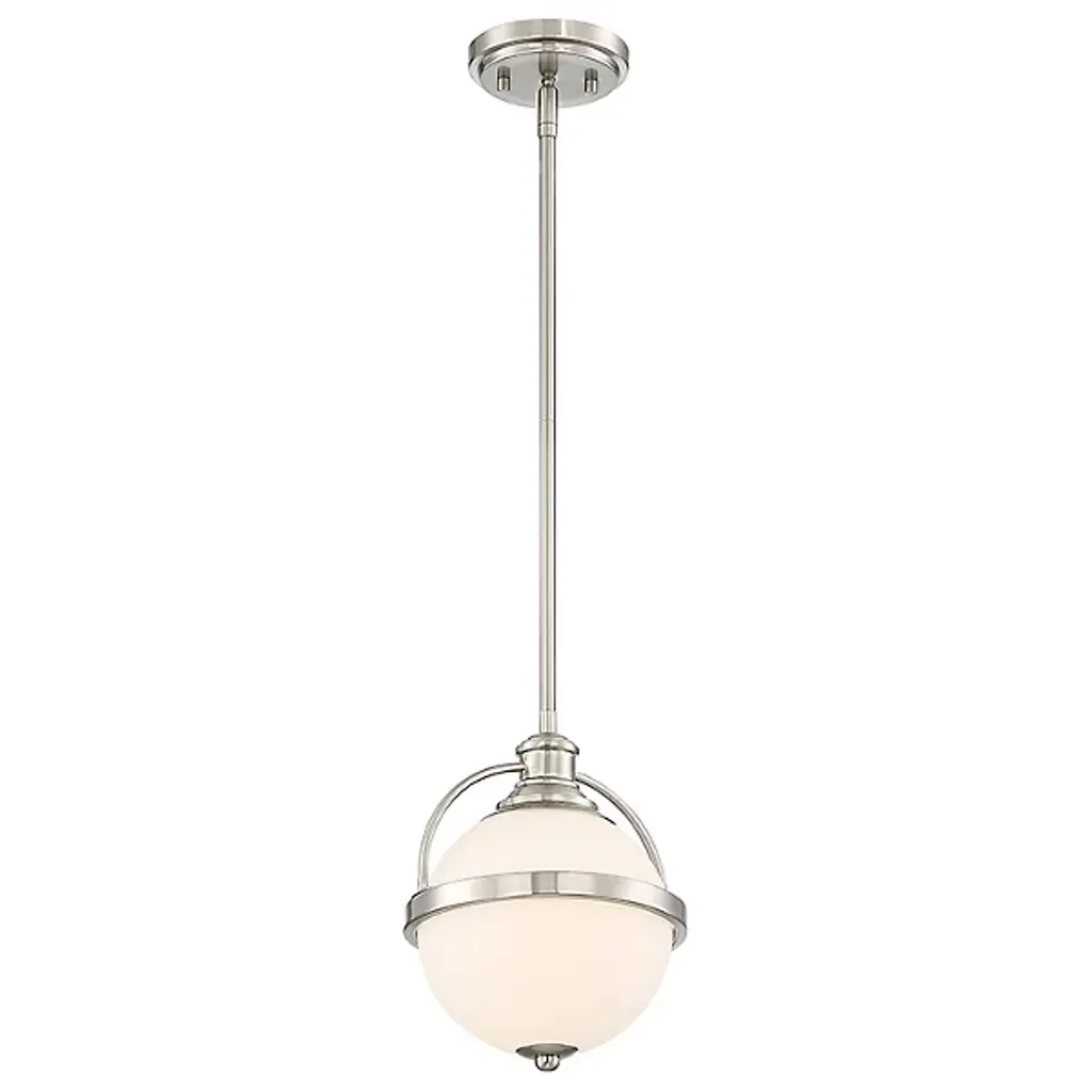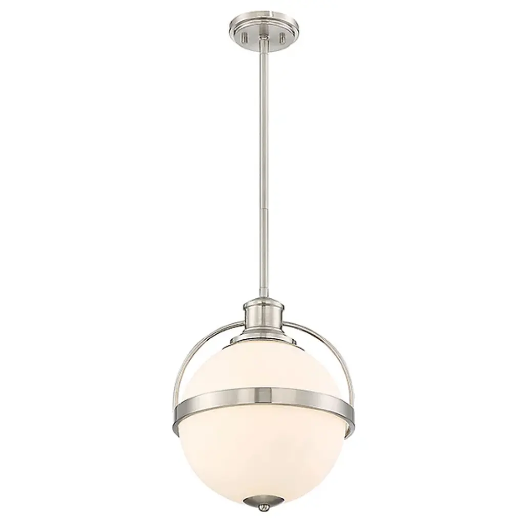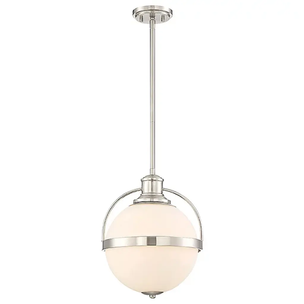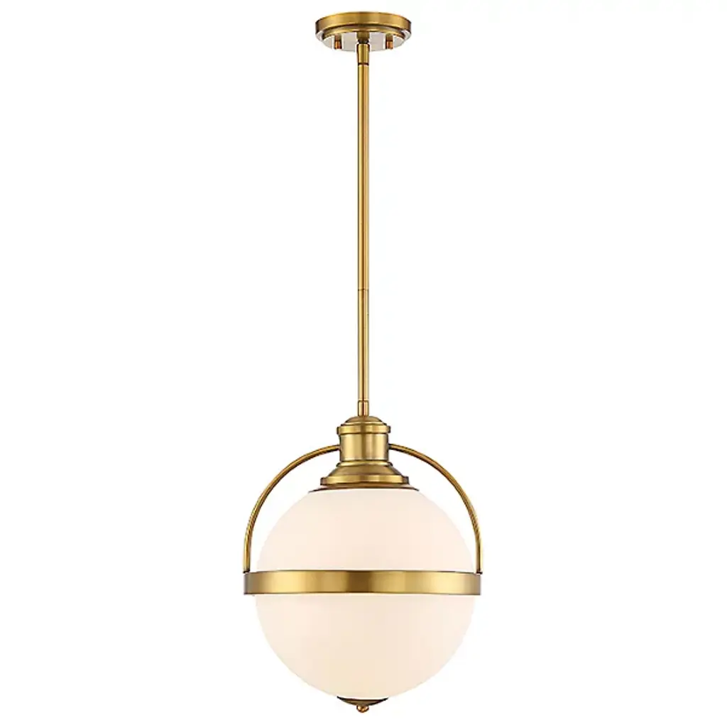 You can never go wrong with the timeless chic of the Westbourne Pendant from Savoy House. The white opal glass orb shade is accented by tasteful hardware in an attractive metal finish to suit transitional or contemporary interiors. With its understated circular ceiling mount and suspension rod plus diffused illumination, this light fixture is perfect to install above a kitchen island, breakfast nook or home bar.