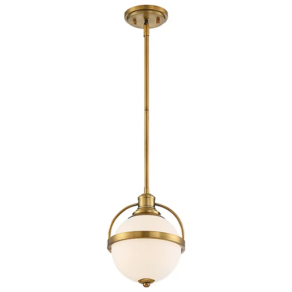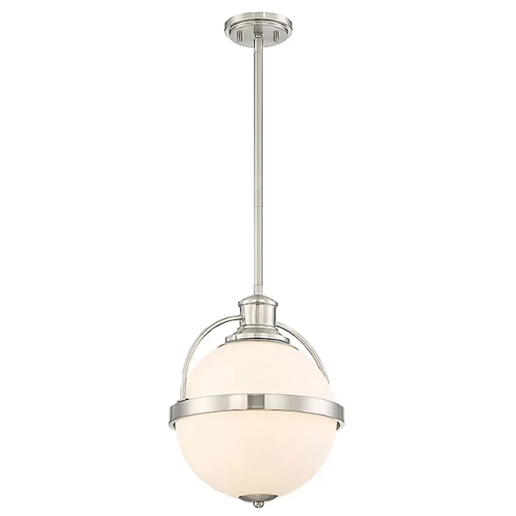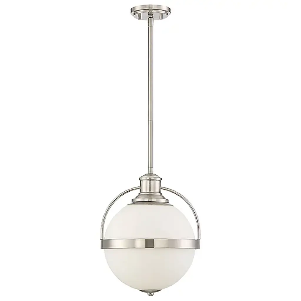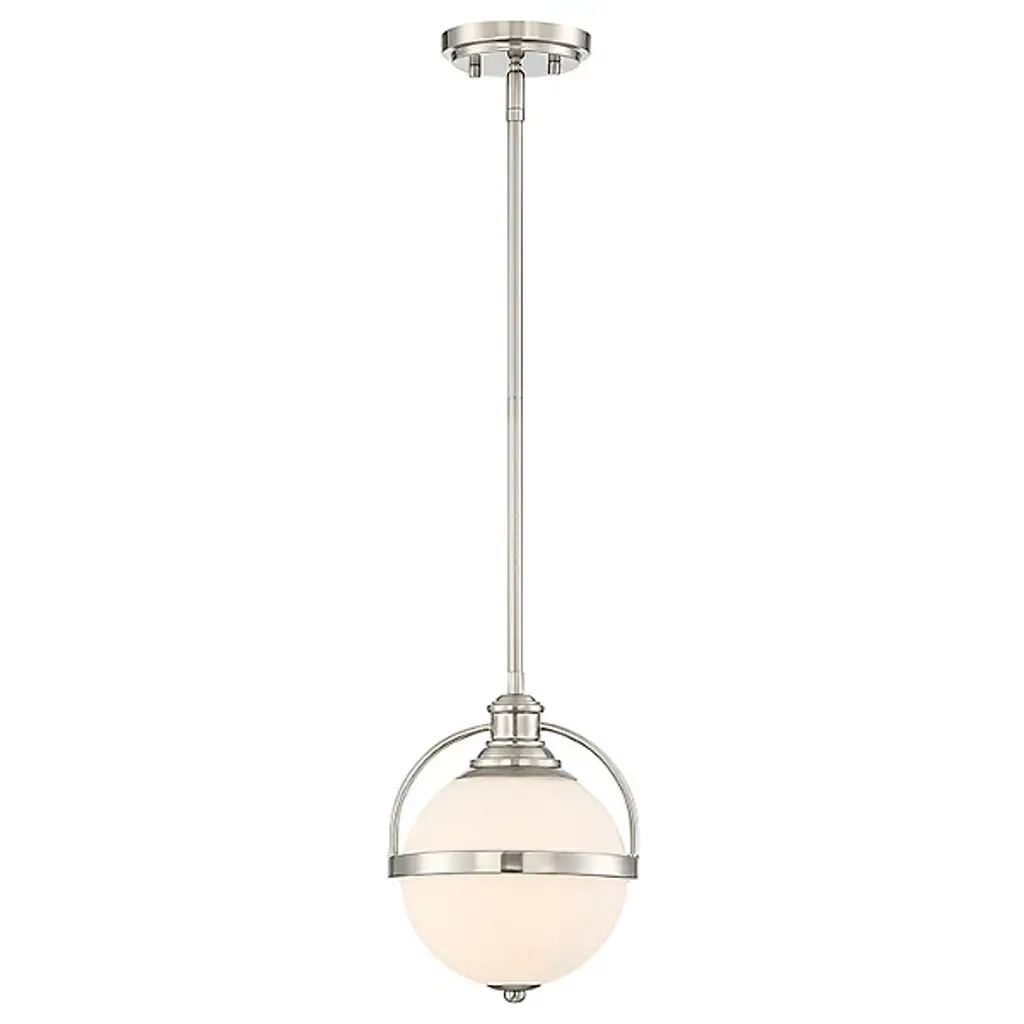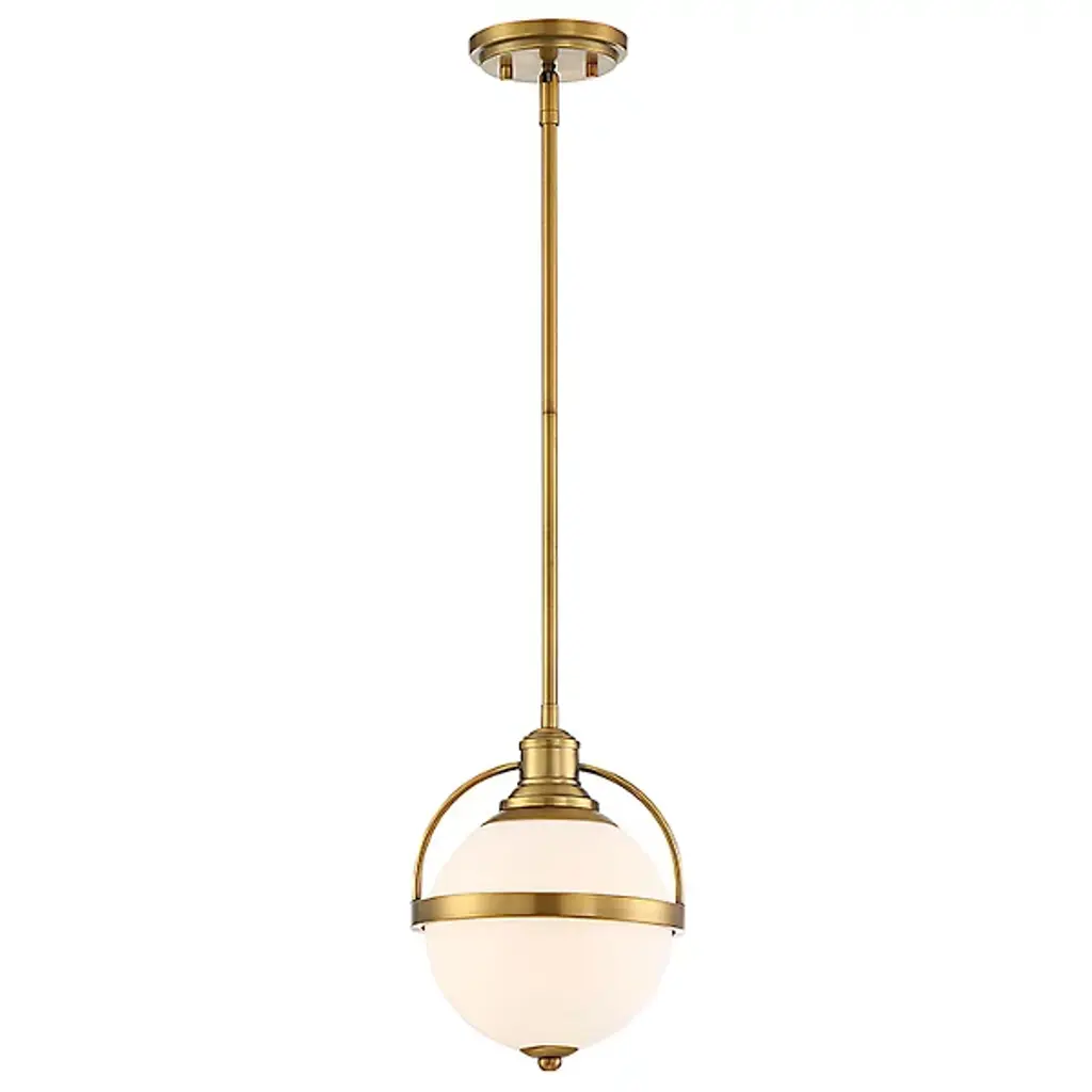 You can never go wrong with the timeless chic of the Westbourne Pendant from Savoy House. The white opal glass orb shade is accented by tasteful hardware in an attractive metal finish to suit transitional or contemporary interiors. With its understated circular ceiling mount and suspension rod plus diffused illumination, this light fixture is perfect to install above a kitchen island, breakfast nook or home bar.