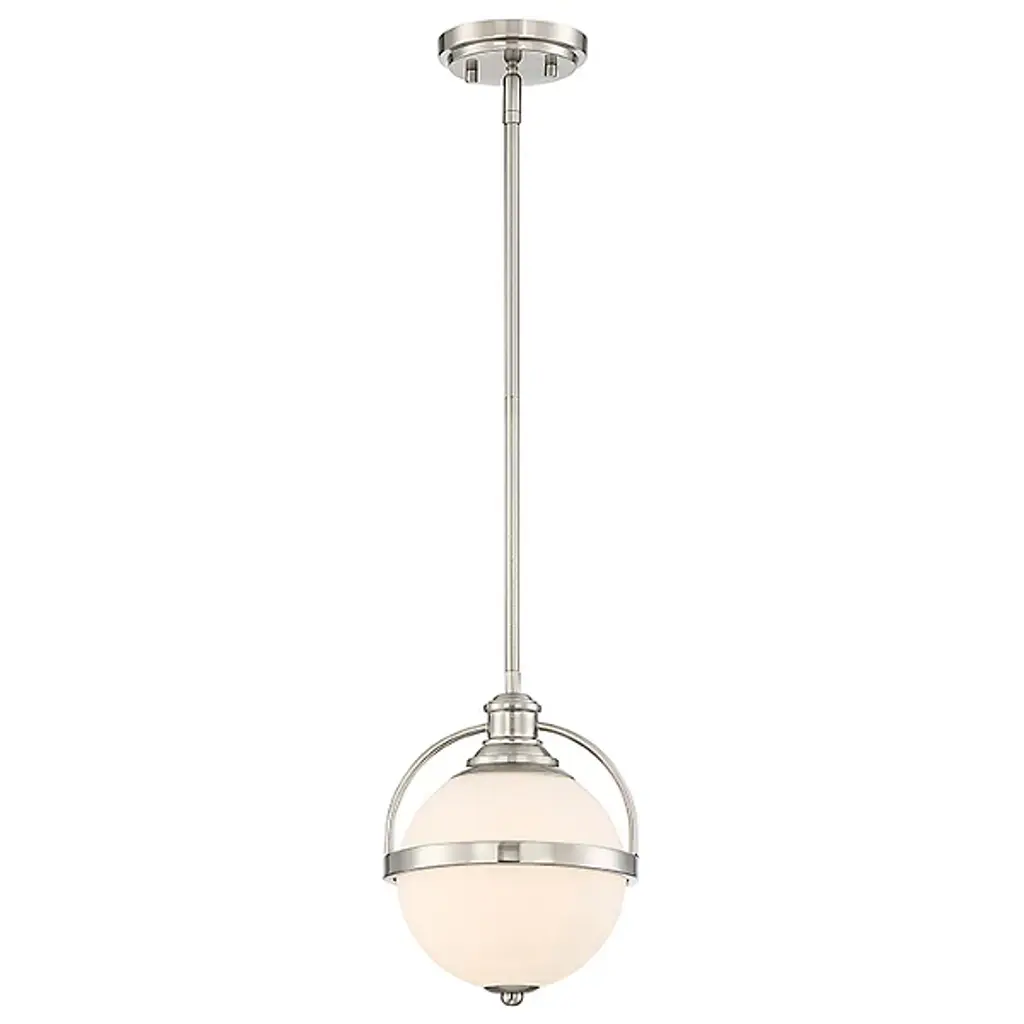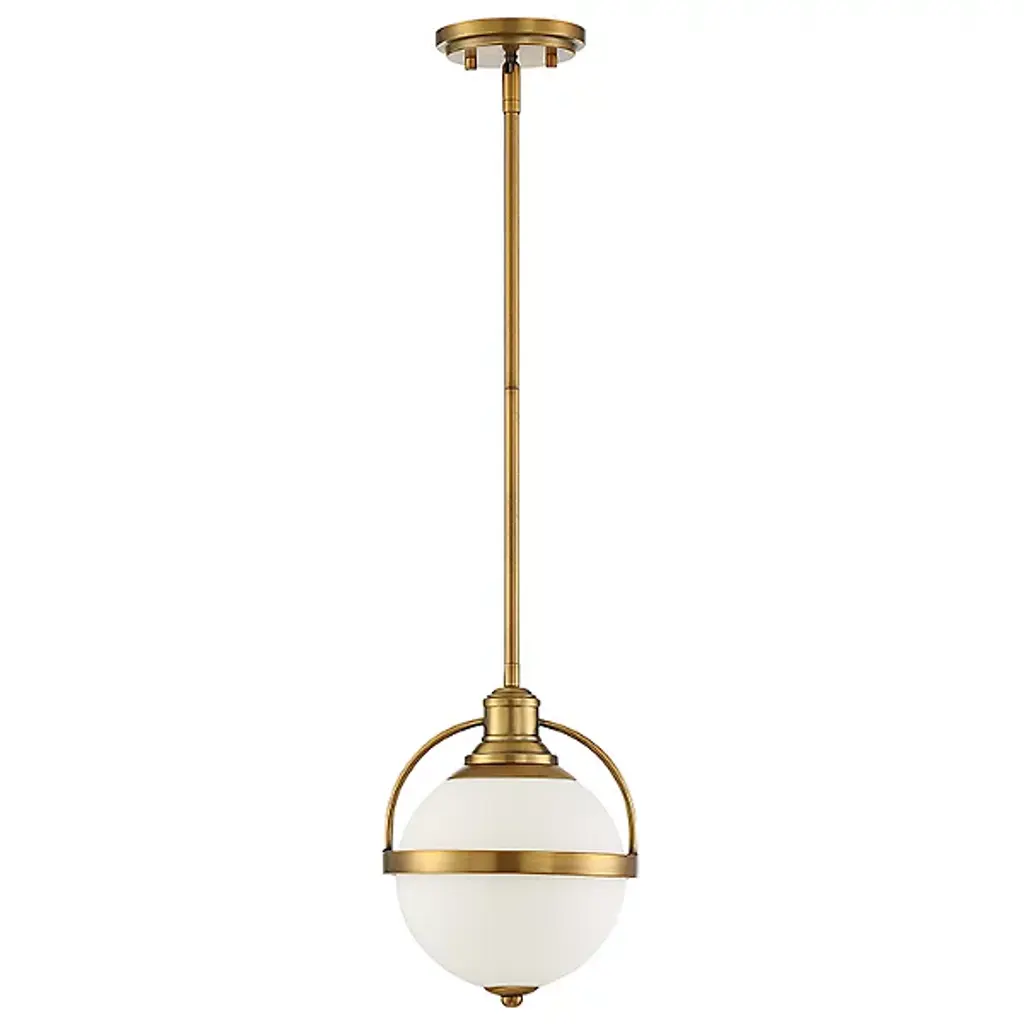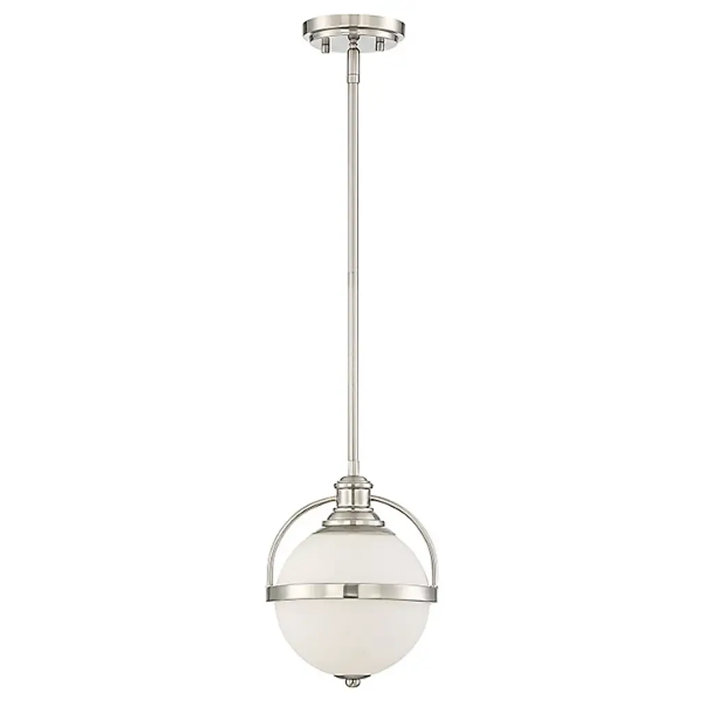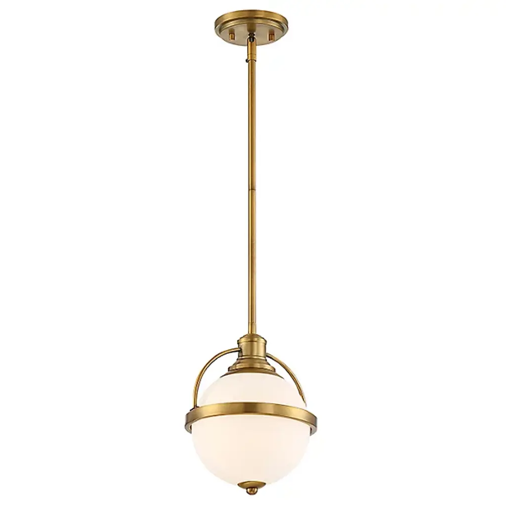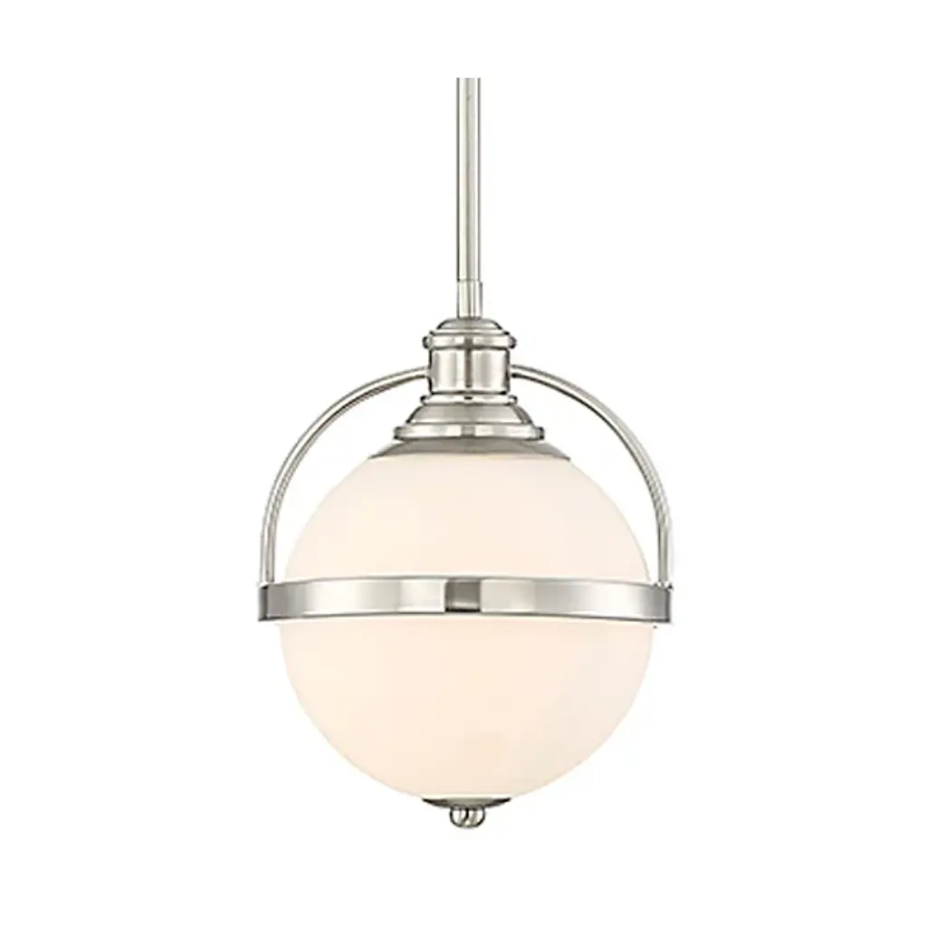 You can never go wrong with the timeless chic of the Westbourne Pendant from Savoy House. The white opal glass orb shade is accented by tasteful hardware in an attractive metal finish to suit transitional or contemporary interiors. With its understated circular ceiling mount and suspension rod plus diffused illumination, this light fixture is perfect to install above a kitchen island, breakfast nook or home bar.