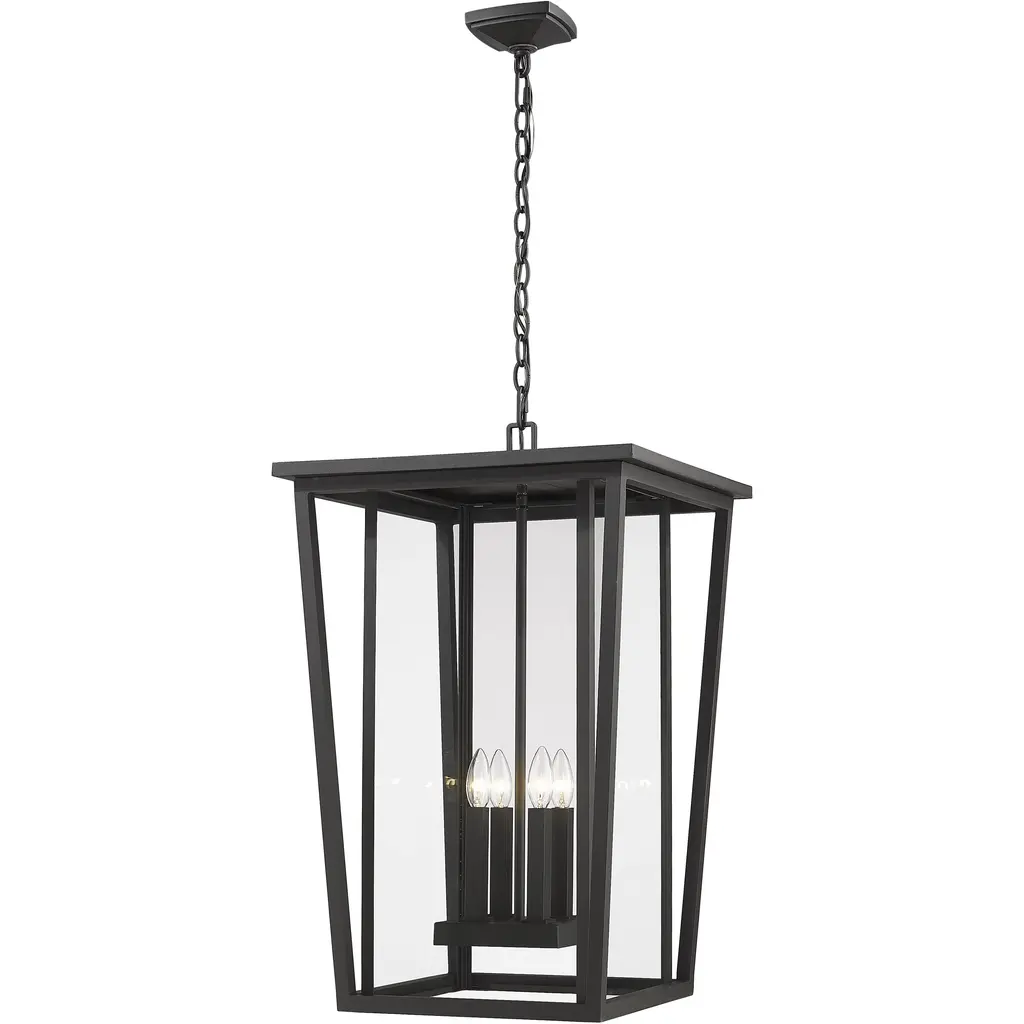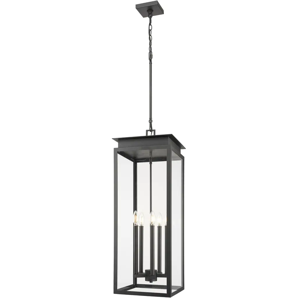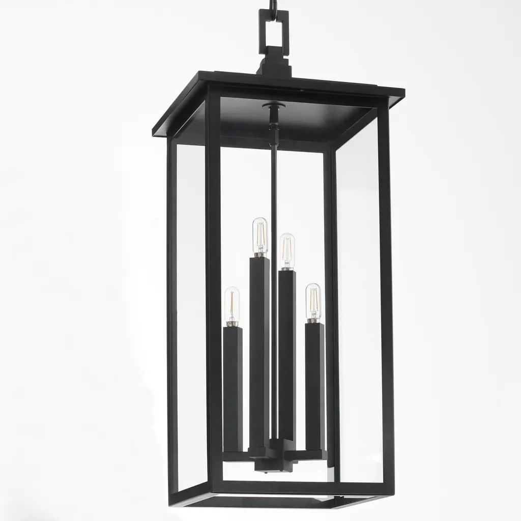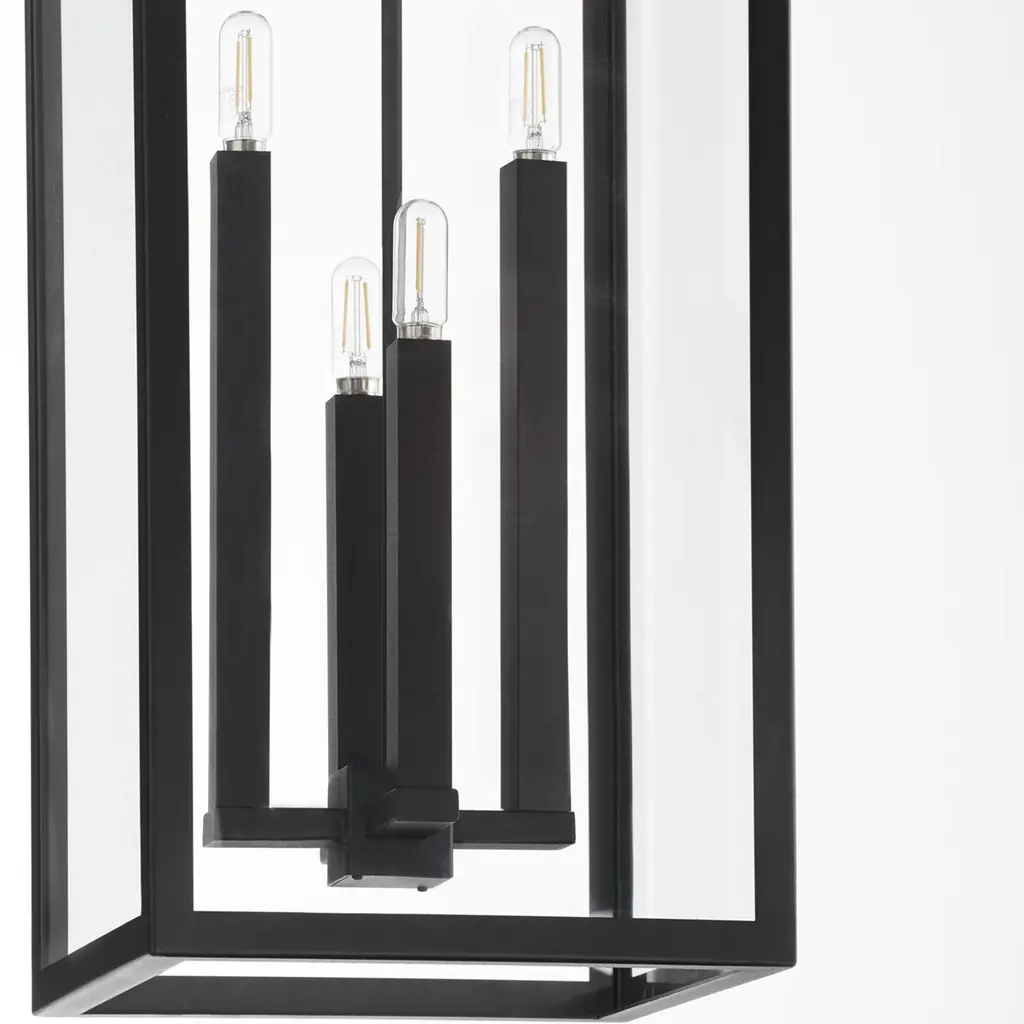 Add that classic touch to your outdoor ensemble with the Westerly outdoor series. This transitional post lantern features four 25 watt candelabra base light sources. This versatile design boasts a textured black finish with interchangeable aged brass, black, and satin nickel sleeves that offer a bit of customization. The canopy and chain sport the same outstanding finish for a cohesive look. With a complimentary four-pane, clear glass enclosure that provides a warm ambient glow. Wet listed to provide your covered porch or patio with an updated look and functional beauty.