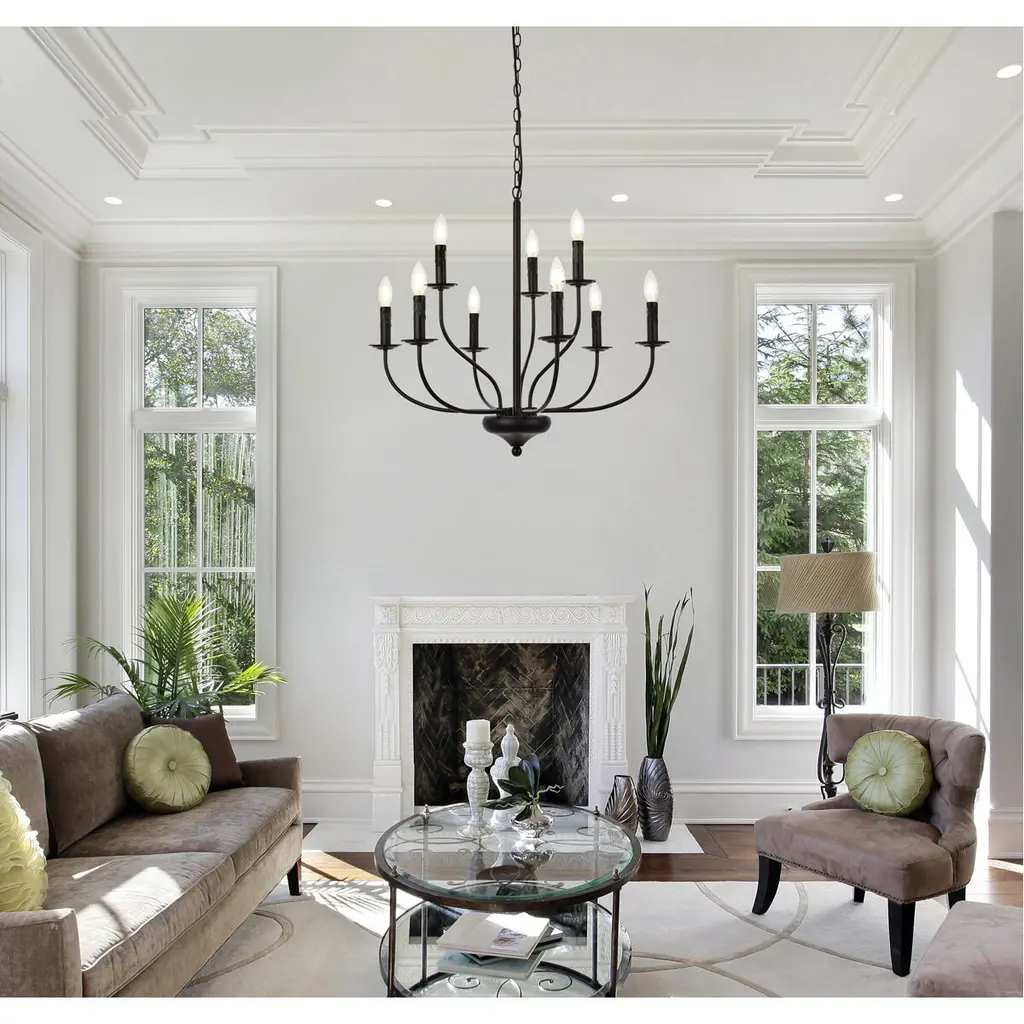 Westley 9 lights pendant in black is the perfect fixture for over a kitchen island, over a dining table, or use in any room to make a big statement. This pendant elevates the look of any space.