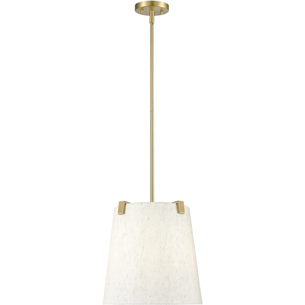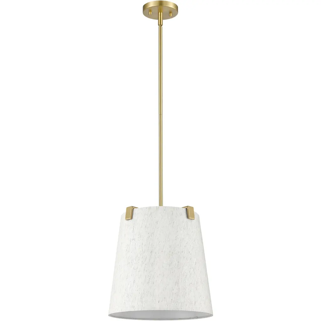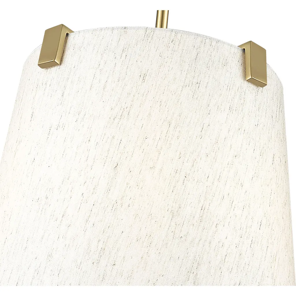 Make a statement in a modern or transitional space with a classic design in fixtures. This three-light pendant highlights islands or living spaces with a sophisticated look, blending chic modern gold finish steel framing and accent clips to a cream fabric shade, as candelabra lights filter through the diffused shade. This dimmable fixture offers variable lighting levels to suit different spaces.