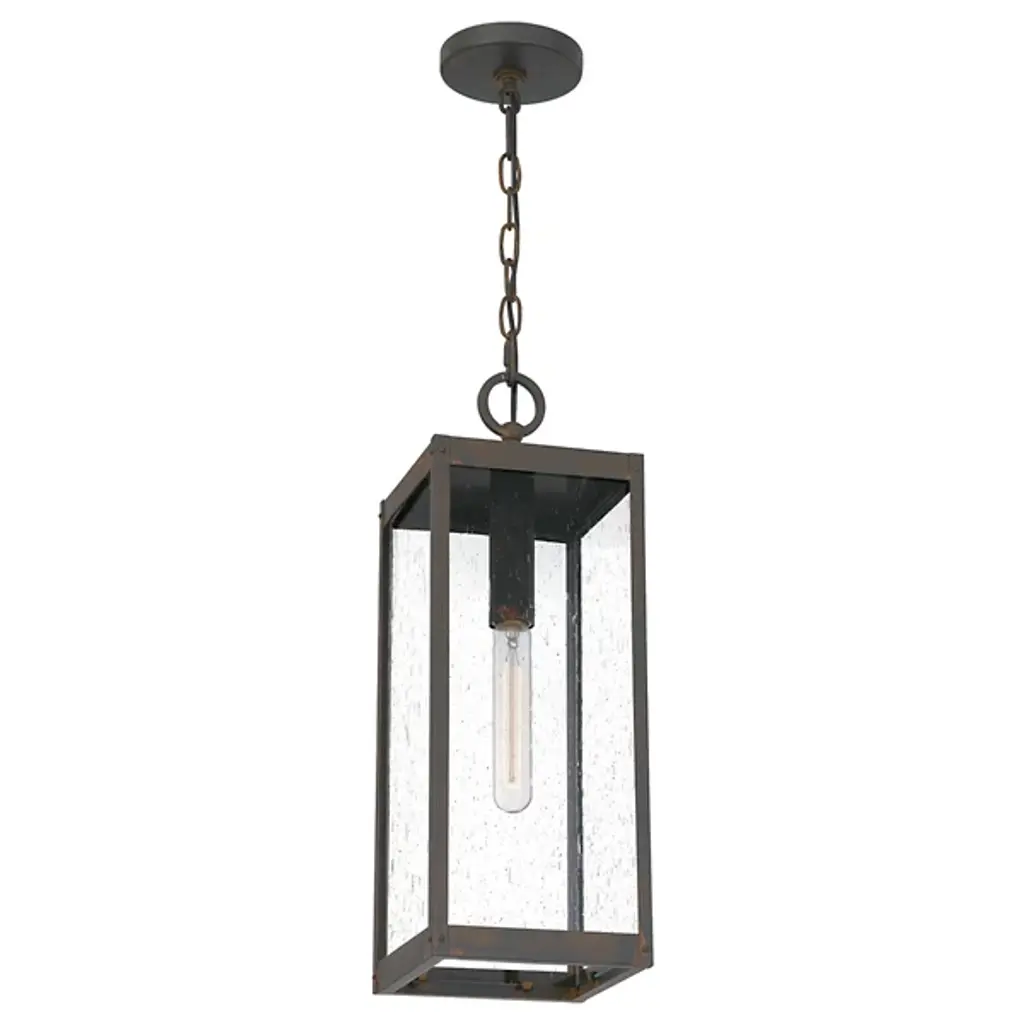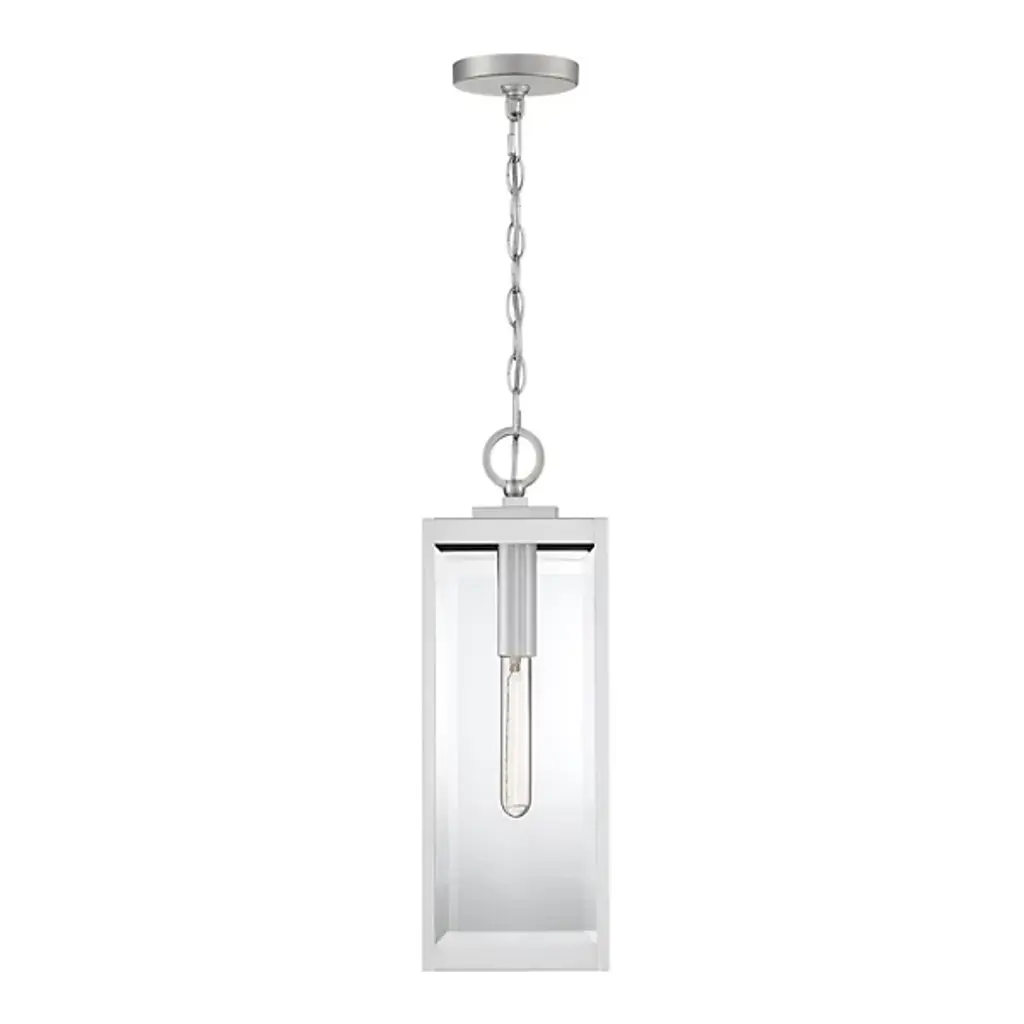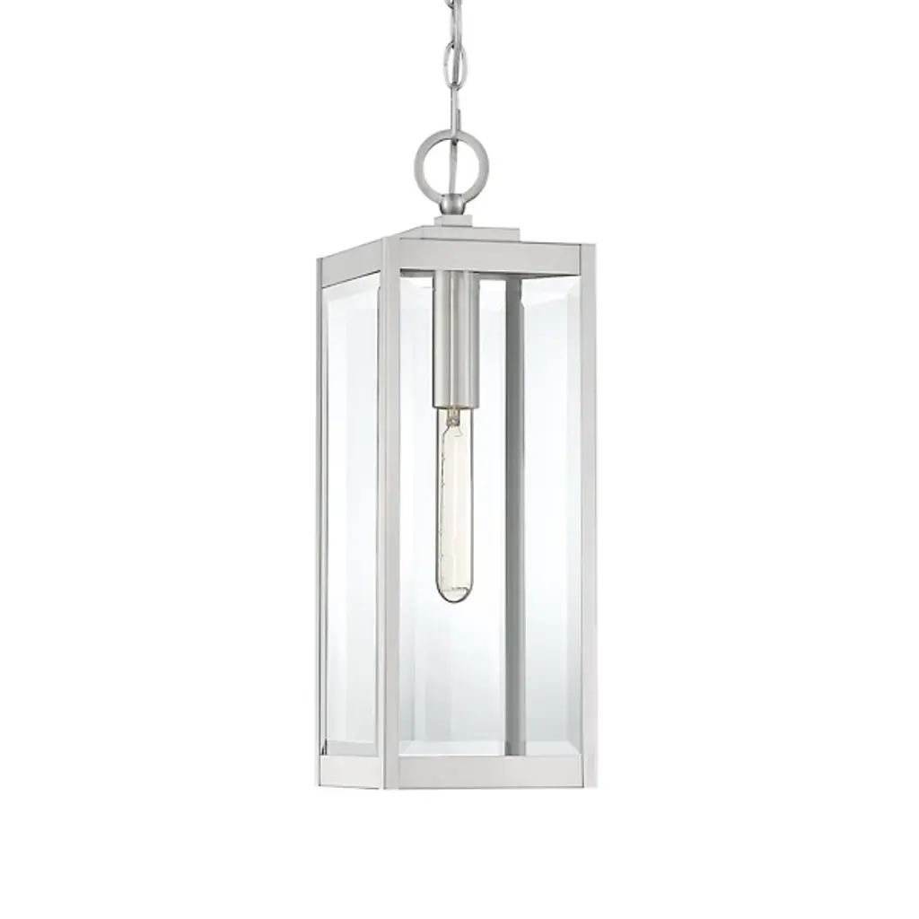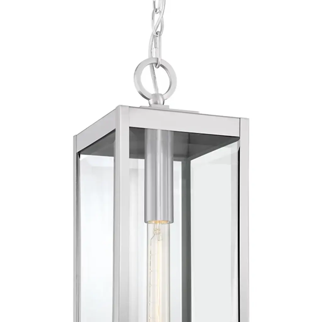 Simple and elegant, the Westover Outdoor Mini Pendant from Quoizel uses clean lines and a tasteful silhouette to instantly enhance your favorite outdoor space. The rectangular body is upheld by a brief chain link connected to a ring finial. Wide panels of clear glass adorn each side, allowing a full view of the elongated, downward-facing bulb resting at the center. The bulb emits a clean and welcoming glow, perfect for announcing your house in an outdoor foyer.