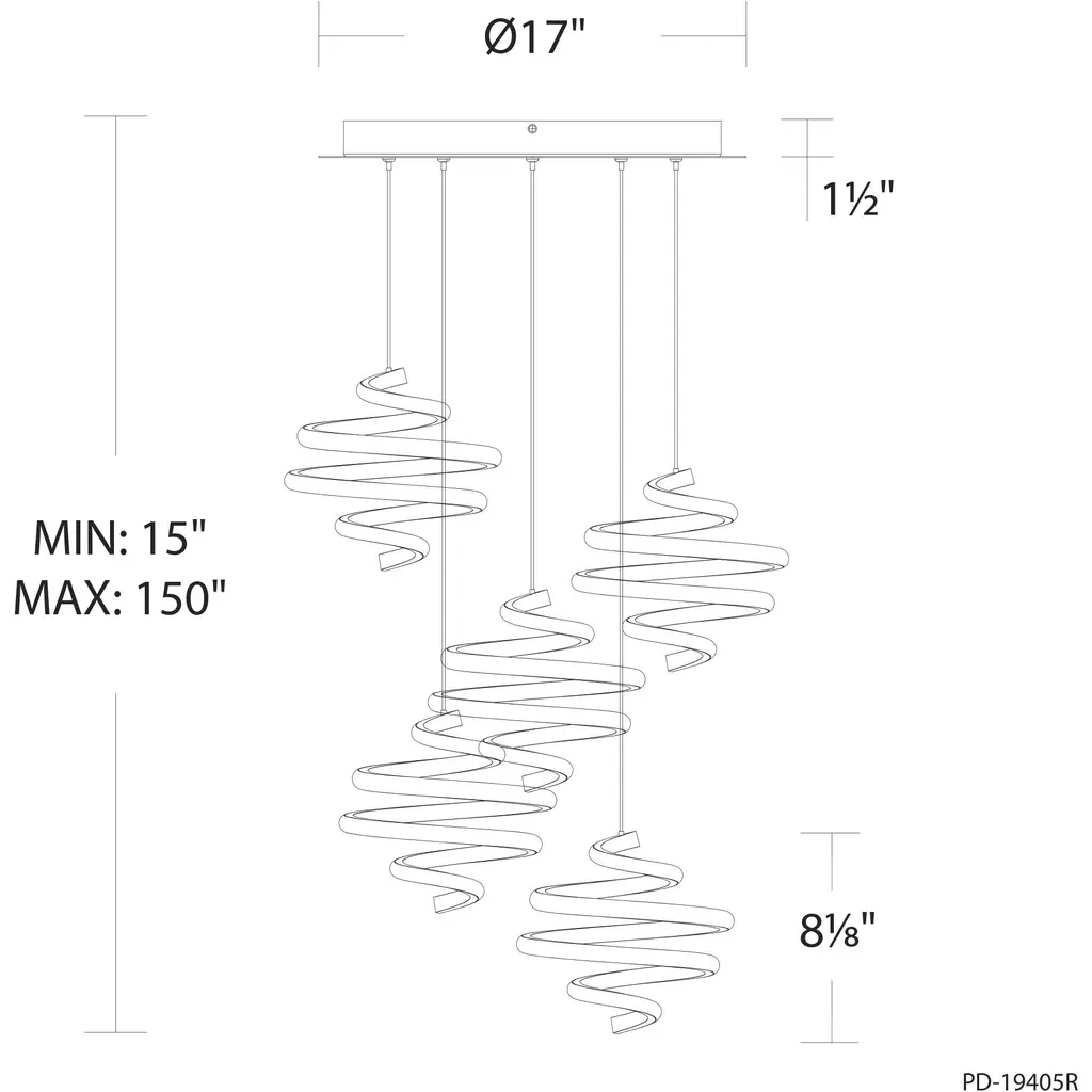 Whirl Led 17 Inch Black Multi-Light Pendant Ceiling Light, Dweled
