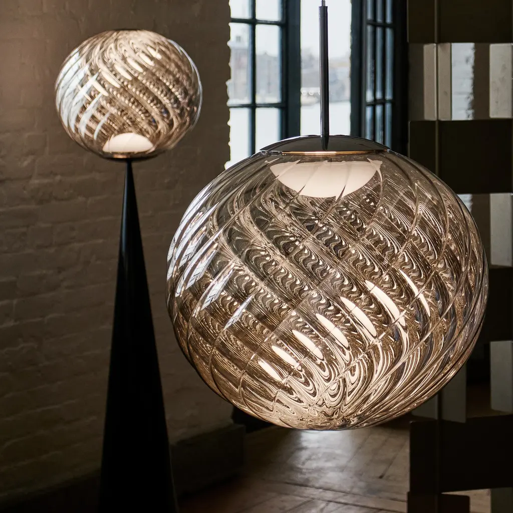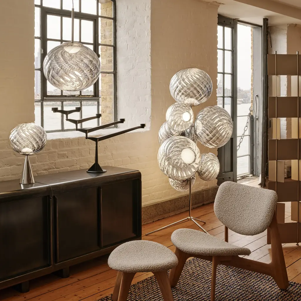 Drawing inspiration from the striking Op Art movement, the Whirl LED Pendant Light from Tom Dixon features a hypnotic spiral design that plays with mirrored reflections. This captivating piece transforms light into a dynamic display of abstract patterns, creating an ever-evolving visual experience. Crafted to intrigue and designed to dazzle, Whirl serves as a bold statement fixture that elevates any interior with its artistic elegance. Highlights