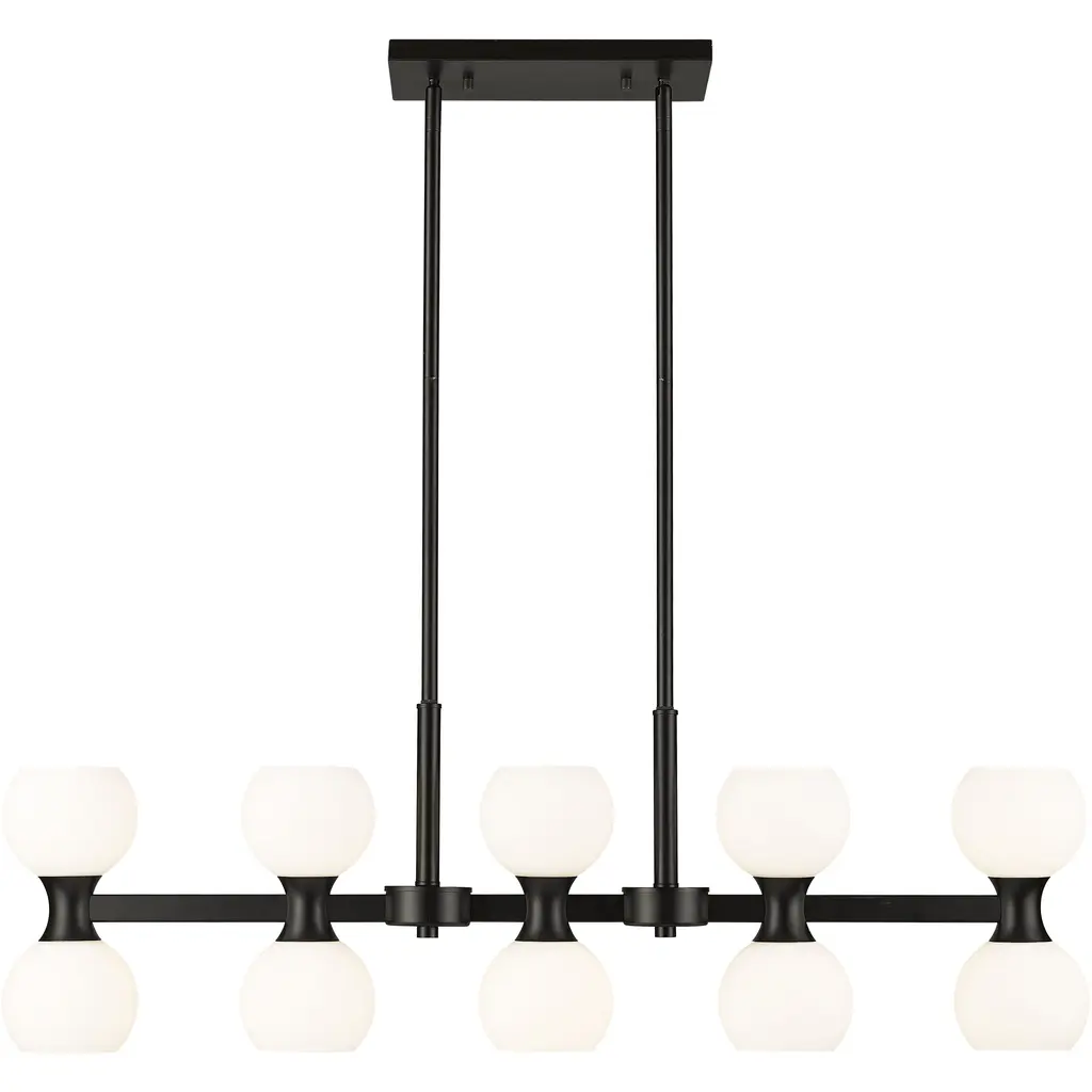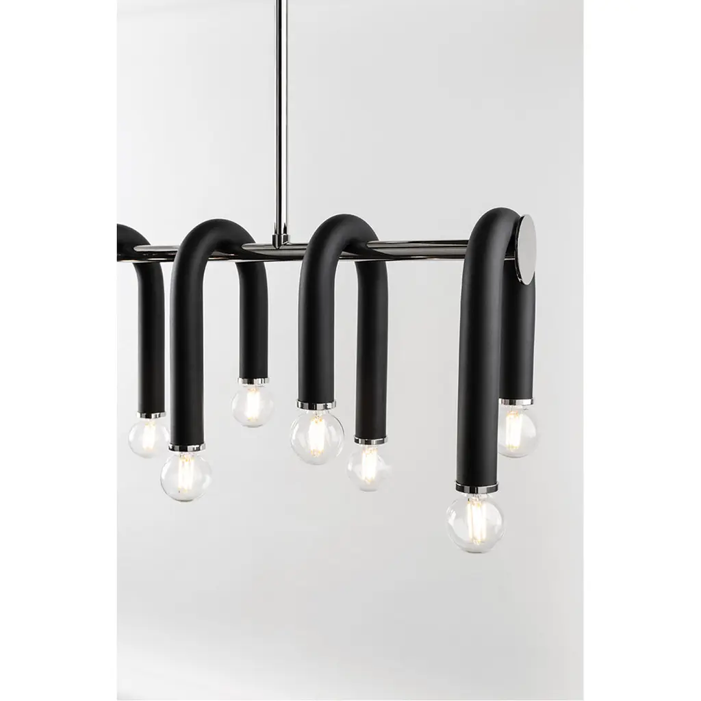 Whit 14 Light 38 Inch Polished Nickel/black Linear Pendant Ceiling Light