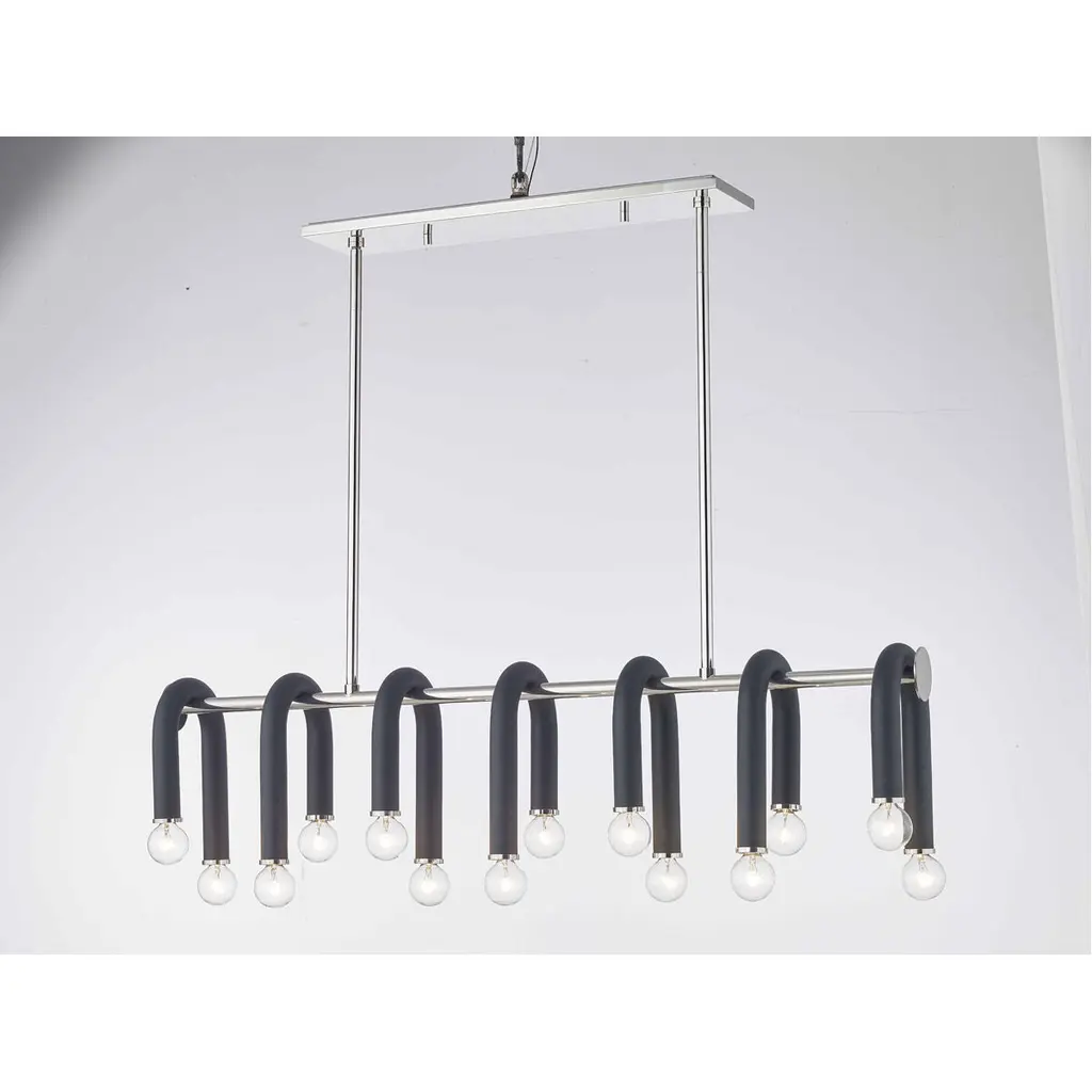 Whit 14 Light 38 Inch Polished Nickel/black Linear Pendant Ceiling Light