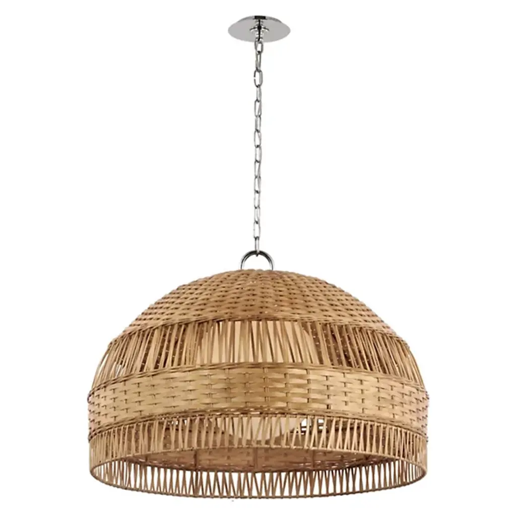 Presented by Visual Comfort Signature, ancient basket-weaving techniques inspire the Whit Dome Pendant by Marie Flanigan. A minimal link chain suspends the oversized shade with natural elements woven throughout, diffusing warm and comfortable illumination. Display Whit as a solo piece or in multiples to animate your space with light and style.