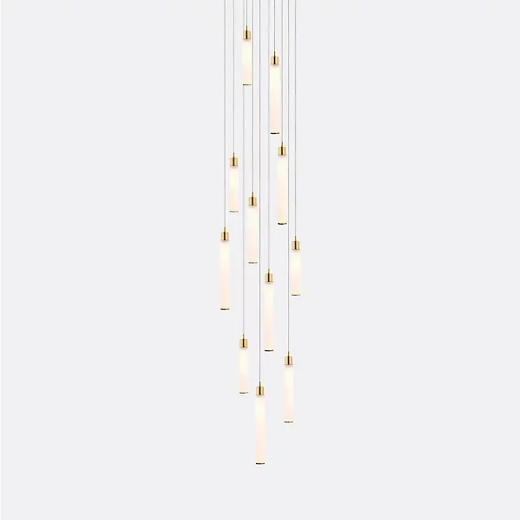 Cool and contemporary. The White Candle 11 Multi-Light Pendant is presented by Shakuff. It has been composed of multiple dangling pendants that display hand-blown glass shades in a cylindrical shape. Each of them is trimmed in a luxurious finish. Made in the USA and featuring energy-efficient LED capability as well as sloped ceiling adaptability, this piece of design lighting will transform a space with pleasant illumination and aesthetics.