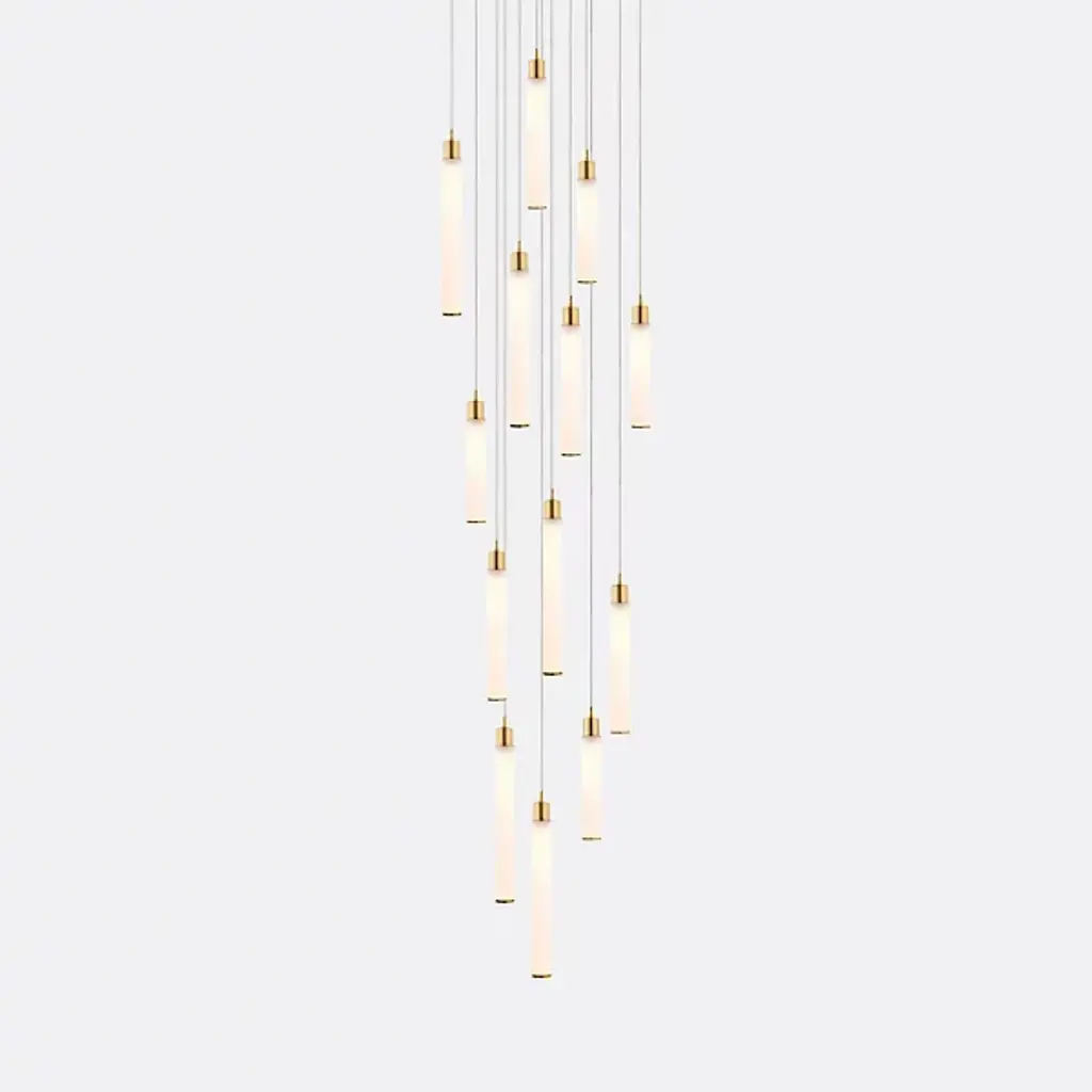 Creatively composed with contemporary appeal. The White Candle 13 Multi-Light Pendant is presented by Shakuff. It is composed of multiple dangling pendants that display hand-blown glass shades in a cylindrical silhouette. Each one is capped with decorative trim in a luxurious finish. Made in the USA and featuring energy-efficient LED capability as well as sloped ceiling adaptability, this piece of lighting will transform a space with pleasant illumination and elevated design.