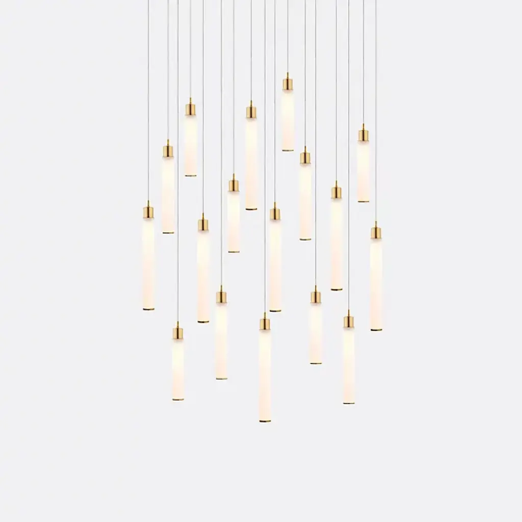 Give your room a cascading aesthetic with the White Candle 17 Multi-Light Pendant by Shakuff. A plethora of suspend from your ceiling through attachment to a ceiling canopy. This lovely piece features cylindrical shades of fine hand-blown glass that facilitate the illumination of your environment. The eye is drawn to each individual shade’s metallic crown that gives your living space an artisanal modern look. This furnishment is available in a variety of hanging lengths so that you can choose the pendant most suited to your needs. The design team at Shakuff takes pride in creating hand-crafted lighting solutions that celebrate individuality with respect to style and aesthetics. With over a decade of experience in the lighting space, Shakuff strives to continually create new, innovative products made in the USA that accentuate the beauty of light.