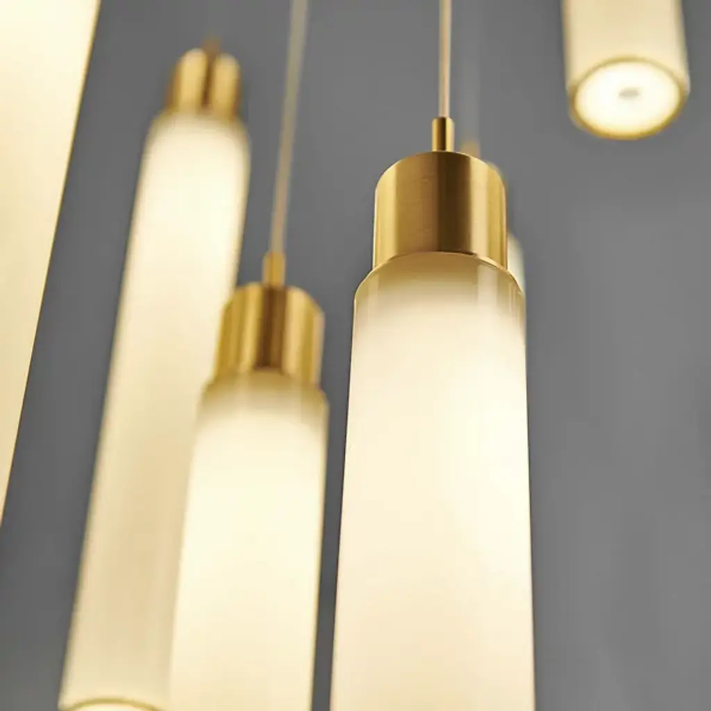 Chic and luxurious. The White Candle 3 Multi-Light Pendant is presented by Shakuff. It is composed of multiple dangling pendants that display hand-blown glass shades in a cylindrical silhouette. Each one is capped with decorative trim in a luxurious finish. Made in the USA while also featuring energy-efficient LED capability and sloped ceiling adaptability, this piece of design lighting will transform a space with pleasant illumination and aesthetics.